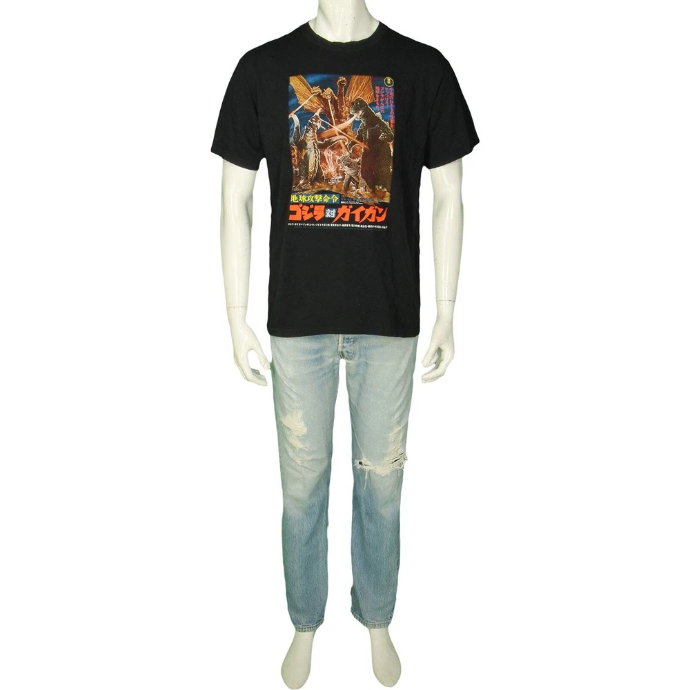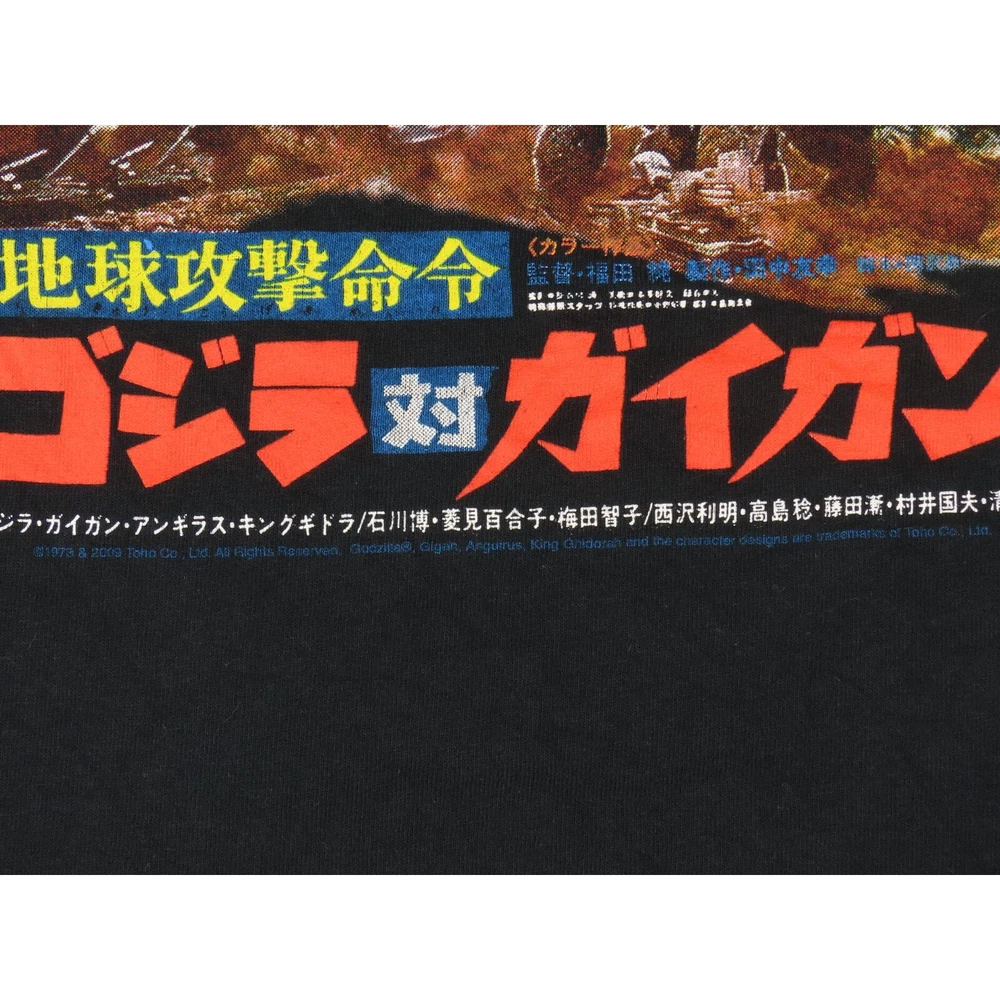 Y2K Vintage Earth Attack Order Godzilla vs Gigan King Ghidorah Japanese Licensed Movie Promo Poster T Shirt Tee L material: 100% cotton color: black condition: small amount of fading size on tag: L mannequin is 6' 2" and a size medium length (from the front on either side of the collar down to the bottom edge): 26.5 armpit to armpit: 21 all measurements are in inches and taken with the garment laying flat any major defect will be mentioned and/or photographed 16271 8t4s1 7g5d2