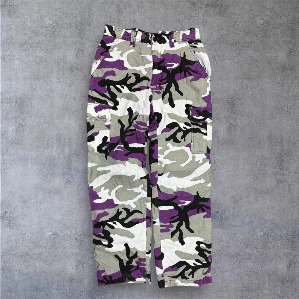 Y2K purple camo cargo pants fleece lined 32x32 essentials Ravens Shipping $7