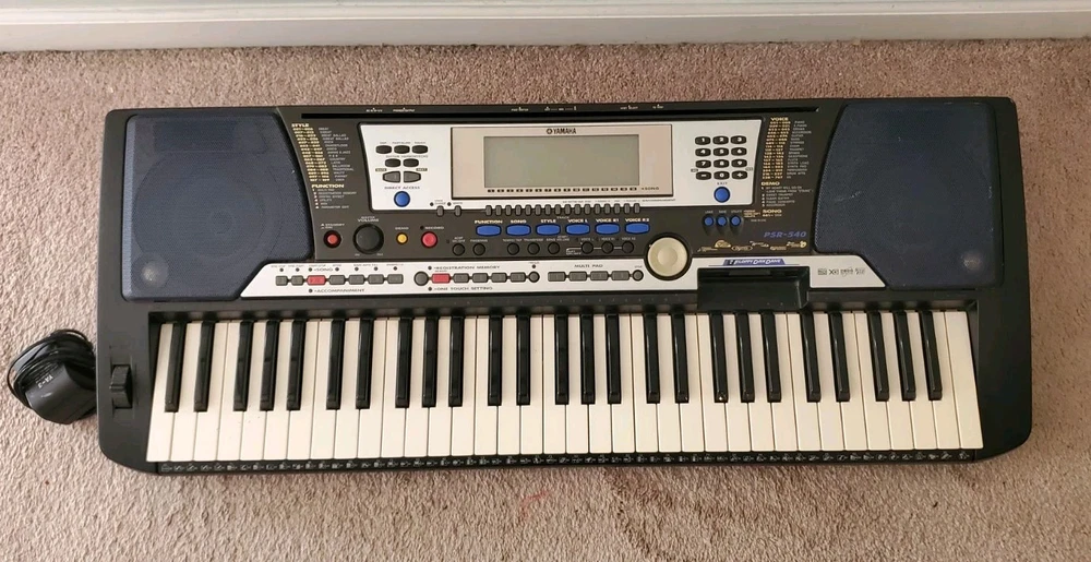 YAMAHA PortaTone PSR-540 Arranger Keyboard 61-keys. It looks and sounds great with the exception of 7 keys that are Silent. Comes w/ power adapter.