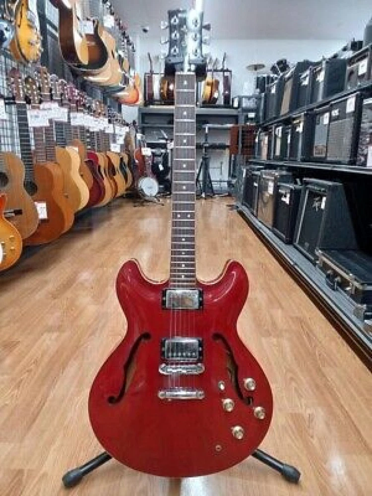 Series: Vintage Body Material: Cava Type: Electric Guitar gtin13: Does not apply Fretboard Material: Rosewood String Configuration: 6 String UPC: Does not apply Seller Notes: “No pick guard, minor rust on plated parts” Neck Material: Mahogany Model: Super Axe SA700 Body Color: Red Brand: Yamaha Country/Region of Manufacture: Japan Handedness: Right-Handed Number of Frets: 22 Body Type: Semi-Hollow