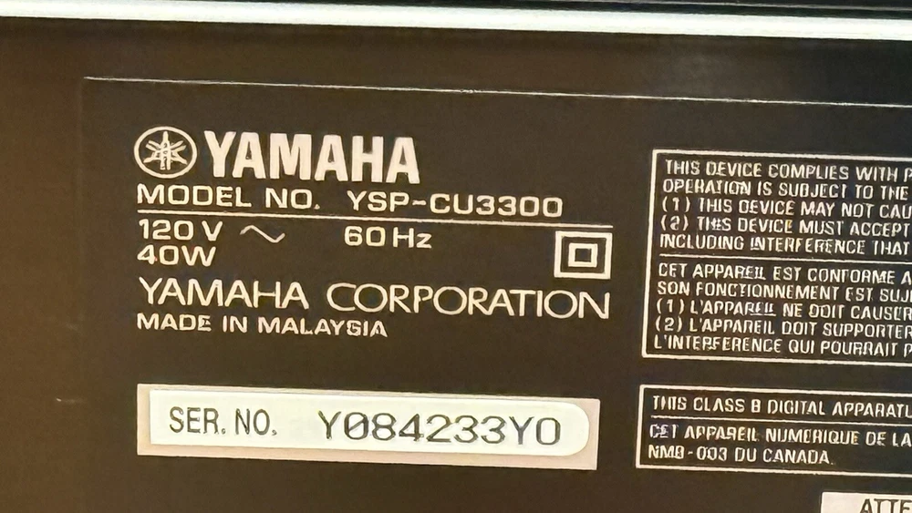 YAMAHA YSP-CU3300 DIGITAL SOUND PROJECTOR SOUND BAR HIFI HOME THEATER STEREO THIS YAMAHA DIGITAL SOUND PROJECTOR SOUND BAR HAS BEEN TESTED AND WORKS AS IT SHOULD AND SOUNDS GREAT. (PLEASE SEE ALL PHOTOS.) THIS SET COMES WITH A REMOTE CONTROL. THIS SOUND BAR WAS RARELY USED AND IS IN VERY GOOD CONDITION. IT TRULY SOUND GREAT WITH A TON OF DETAIL FOR ANY AUDIOPHILE OR MUSIC LOVER. WHETHER THE SOURCE BE FROM TV, TO MUSIC, TURNTABLE, OR CD PLAYER RUNNING THROUGH JUST THROUGH THE SOUND BAR, IT TRULLY SOUNDS AMAZING. VERY GOOD CONDITION. MINOR WEAR OTHERWISE LOOKS GREAT. THERE ARE SOME VERY MINOR SCUFFS . (PLEASE SEE ALL PHOTOS.) OTHER THEN THAT, VERY GOOD CONDITION. SHIPPING TO LOWER 48 STATES ONLY. CANNOT SHIP TO ALASKA, HAWAII, OR PUERTO RICO. I will get this delivered to you ASAP. It will be shipped out same day or next business day. Thanks for looking!!! Please take a look at my other Auction listings:) Have a great day:)