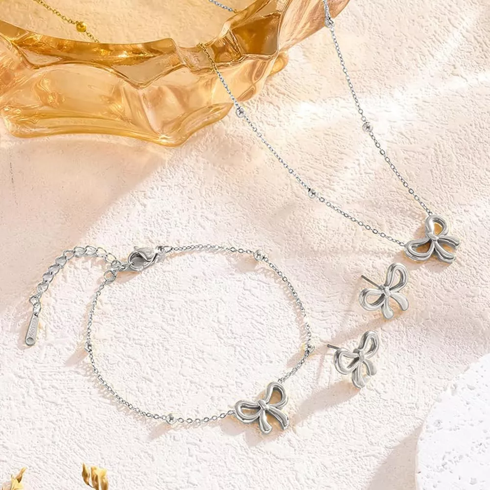 YANCHUN Bow Earrings Necklace Bracelet Gold Jewelry Set Trendy Bowknot Ribbon Pearl Choker Necklace Trendy Bow Stuff Jewelry Gifts Product Details Package Dimensions : 5.71 x 4.02 x 0.63 inches; 0.32 ounces Department : womens Date First Available : November 30, 2024 Manufacturer : YANCHUN Brand, Seller, or Collection Name: YANCHUN Metal: metal Material: Metal Gem Type: No Gemstone