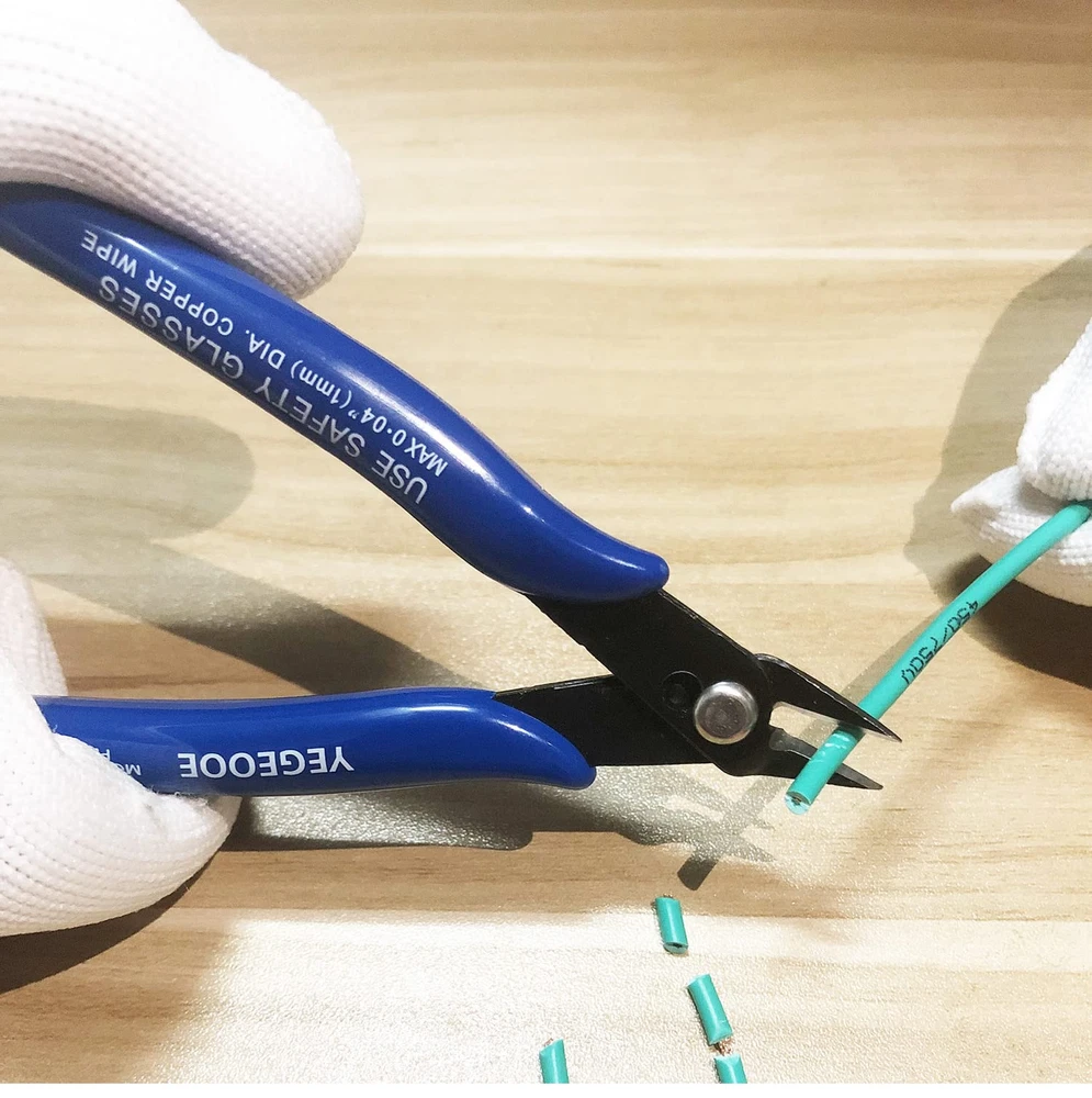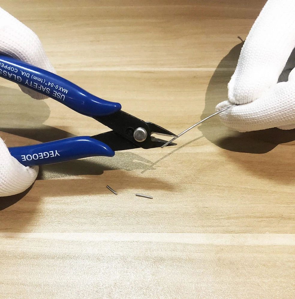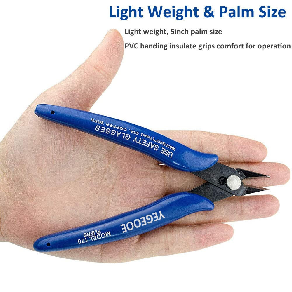 Ultra-High Hardness YEGODO Flush Wire Cutters has an 13mm long chrome vanadium steel jaw with angled head design. They are ideally sized for working in small spaces and improving your productivity. Super-Sharp Blade Flush Wire Cutters are very sharp, induction hardened cutting edges without bevel for flush cutting. They offer extremely smooth movement for minimum operator fatigue. can provide 1 year and dedicating support to assure your long-term enjoyment, If you have any questions, please us at any time, and we will reply within 24 hours and give you a satisfactory result. Cutting Ability: Plastic ?4.0mm Soft wire 12AWG Copper wire 12 AWG(?2.0mm) Iron wire 14 AWG(?1.6mm) Ideal for cutting small wire, sprue, tie wrap, beading wire, zip ties, plastic, and can be used to trim small copper, brass, iron and aluminum. Note: Please do not use it to cut hard or big gauges wires. Features: 1. Used in electronic industry repair, jewelry processing, model making and fishing, etc 2. Special suitable for cut wire, electronic feet, trimming plastic products, cut a small metal wire, and so on 3. The electrical cutters is made of #55 hardness Carbon Steel for strength, and provides sharp ease and durable . 4. Ergonomically designed non-slip rubber handle for comfortable operation. 5. 5" Palm Size and light weight 60g/pcs only, for perfect cutting and portable using. 6. With 45 degree Angle use in tight spaces and spring loaded make it very easily and simply use. 7. Whether you are a professional or amateurish electrician or housewives ,you can use this to do a good cutting job easily. Package Included: 5 x 170 Flush Cutters 【Model & Size】:5pack 170 flush wire cutters, 5inch palm size for perfect cutting and portable using 【Sharp & Strong Blades】: Made of #55 high carbon steel,11mm long heat-treated carbon steel jaw with angled head design,ultra sharp,our clean cut pliers can cut up to 16AWG soft iron wire,14AWG electrical cables etc 【Internal Spring Loaded 】This diagonal wire cutter is with the spring loaded design, easy to open and engage,to reduce workload and effectively prevent long-term work fatigue 【Comfortable Grip】: Made of PVC mateial,it has non-and tasteless properties, and provides a rubber-like texture 【Application】: Our wire nippers are very suitable for cutting small wire,vape wire ,tie wrap,beading wire,zip ties,plastic,electronic pin,electronic repair and jewelry processing etc.To ensure the durability of the cutters,hard steel wire is not recommended to cut