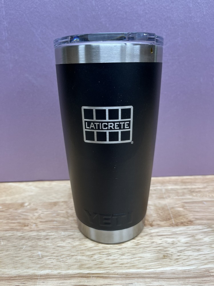 This is a brand new Yeti Rambler 20oz Tumbler featuring the Laticrete Logo design. The tumbler is black in color and part of a collaboration between Yeti and LATICRETE.Miud slider top. This item is brand new but has no packaging. NEVER USED!