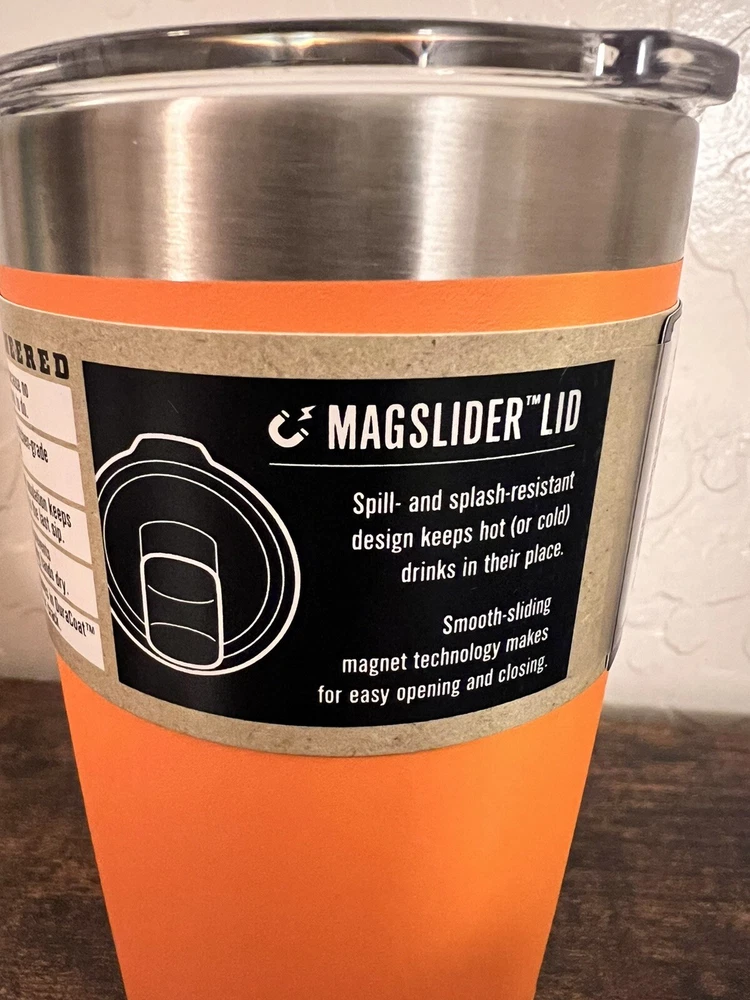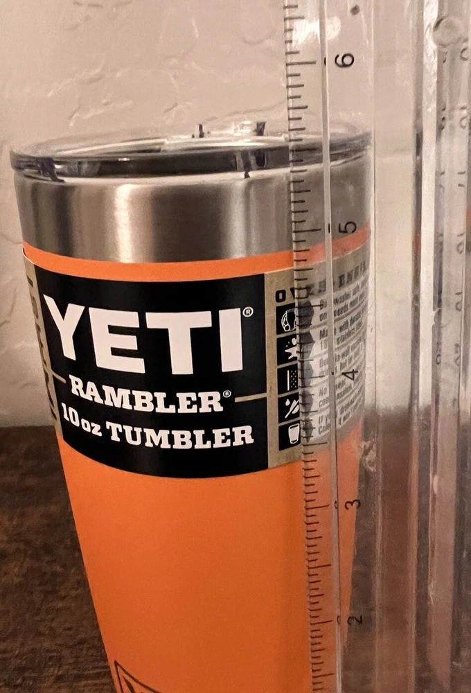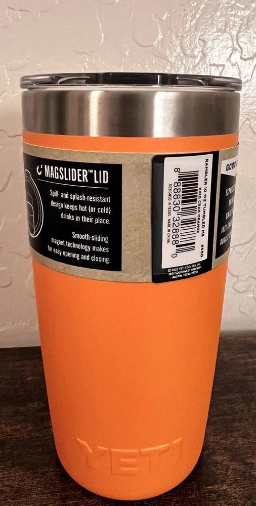 Introducing the YETI Rambler 10 Oz Tumbler with Magslider Lid in King Crab Orange Limited Edition. This high-quality container lid is designed to fit YETI Rambler tumblers and flasks securely. The slide lock lid type ensures that your beverages stay hot or cold for hours. Made of durable stainless steel, this lid features a solid color pattern in orange, making it a stylish addition to your camping gear or kitchen accessories. With a capacity of 10 oz, it is perfect for containing your favorite hot or cold drinks. The YETI Rambler model is known for its quality and durability, making this lid a reliable choice for any beverage. Item Dimensions Measurements 1 2.83 "W x 5.66"H 1.0 Count 10 ounces