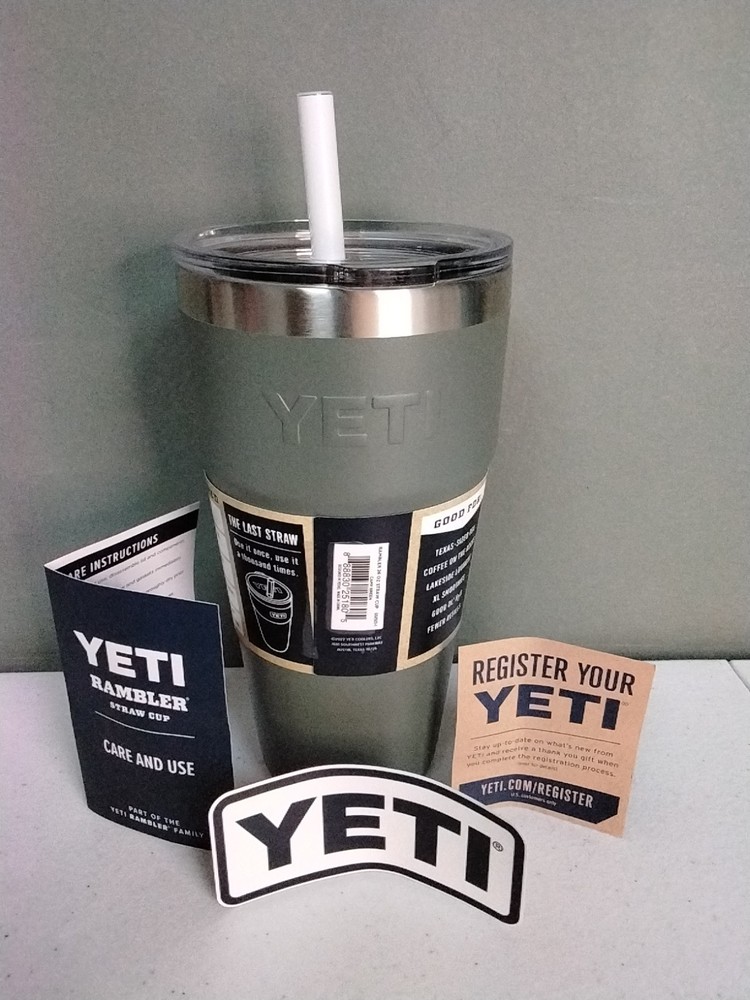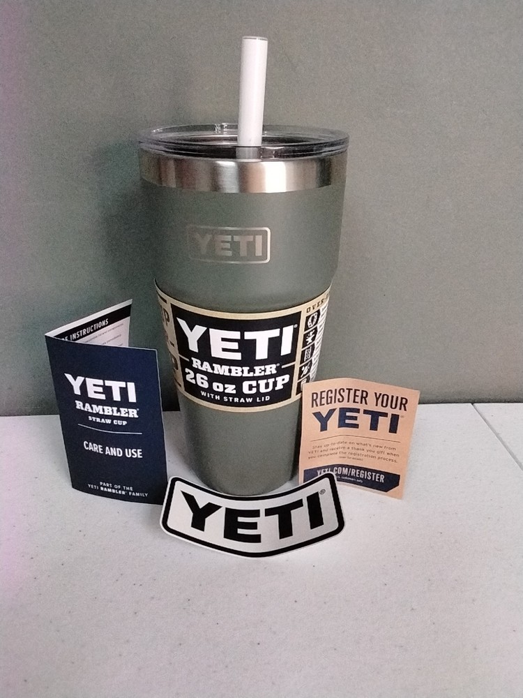 The YETI Rambler 26 oz Straw Cup in Camp Green is a high-quality stainless steel tumbler with a click closure and straw lid for easy sipping. It features a 26 oz capacity, double wall insulation, and is BPA-free for safe use. This tumbler is ideal for outdoor activities like camping, hiking, and adventuring, making it a convenient and durable hydration solution. The Camp Green color adds a fun touch to your drinkware, while the included sticker and straw enhance its functionality. Perfect for staying hydrated in style on your next adventure.