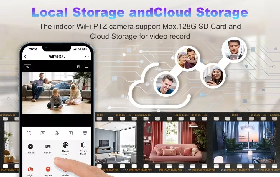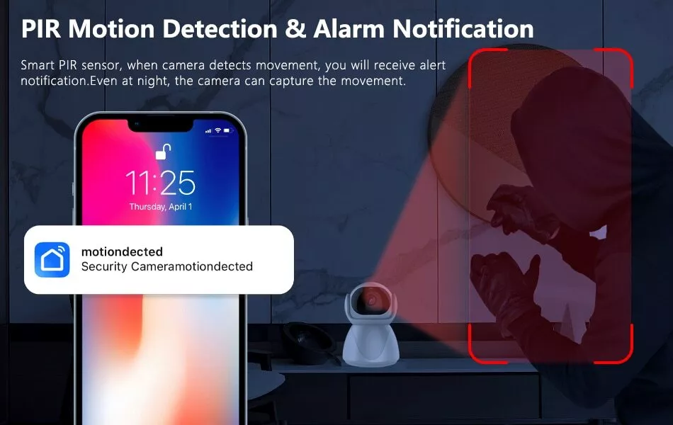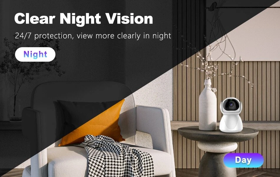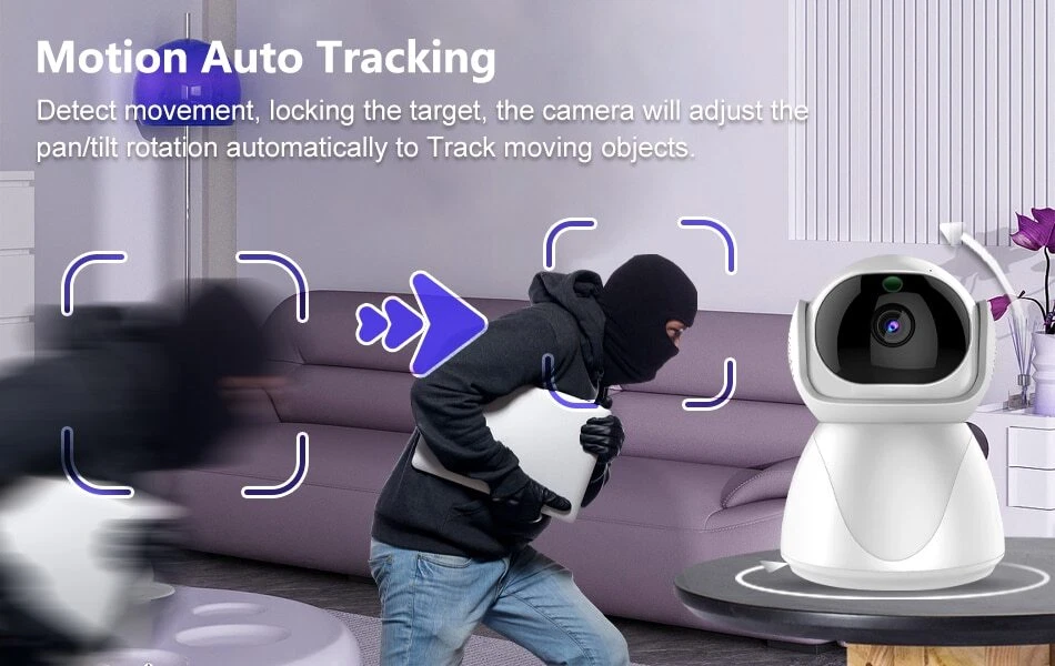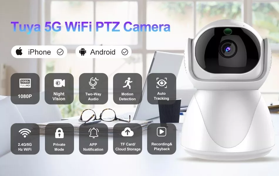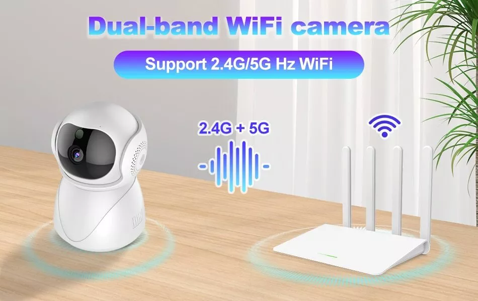 NOTE: * 1. Please try to be as close to the WiFi router when connecting device. * 2. Any problems, please contact us for detailed information at first time! WiFi Camera Smart Home Indoor Security Wireless Surveillance Camera 5G WiFi 1080P Auto Tracking Baby Monitor Camera With Alexa - 2.4 G and 5G Hz WiFi connection, 1080P HD Resolution - Two Way Audio. Built-in Mic and speaker, talk with people in real-time - PIR Motion Detection. High sensitive motion sensor, APP push instant notification. -Clear Night Vision. 1080p HD resolution, night vision up to 10m - Motion Auto Tracking. Horizontal:355°&Vertical:60°, wide view angle - Multiple Platforms Viewing. Camera support to view on PC website and mobile phone APP - Privacy Mode. Turn of/off camera according to your needs - Preset Point. Collect the monitoring area you want to view - Support Max. 128G SD Card and Cloud Storage for alarm recording - Intelligent Voice Control. Works with Alexa and Google Assistant - Download free APP " YIIOT " from Google Play or Apple Store - 3 Steps for simple installation: ① mobile app QR code on the code instructions, download the mobile APP ② device connecting power supply and power supply work ③ Smart connection in the APP, add device to watch. Multiple platform Viewing * Watch the live view on PC website, just login this website: https://ipc-eu.ismartlife.me/login. * Watch this tuya indoor wifi camera on "Tuya Smart" APP or "Smart Life" APP Voice Command Works with Alexa/Google Home(Note:Optional). Voice command like: alexa, show me the front camera 2.4G/5G Dual-Band Connection WiF i Camera Smart home security camera support both 2.4GHz and 5GHz WiFi connection, provide more options of wireless connection. Privacy Protection Privacy mode can better protect your privacy. You can turn on/off the camera at any time on the APP. 1080P HD Indoor WiFi PTZ Camera 1920*1080P HD resolution, high-definition picture, high-quality visual experience. You can more clearly see the objects in the video. Pan/Tilt and Zoom Pan/Tilt/Zoom: View 355° horizontal, 90° vertical rotation range through Mobile Phone, which cover more spaces and reduce blind area PIR Motion Detection & APP Alarm Notification When the camera detects a person or a thief come in the surveillance area, APP will push notifications to your mobile phone. Any suspicious movement thrown into the camera' eye will be detected and recorded, let thieves and robbers nowhere to hide. Smart Motion Auto Tarcking Security Camera Monitoring a wider area. The camera has automatic tracking function, it can follow the human movement to change the monitoring area. You can open or close this function on APP. Sound Detection Alarm Baby Monitor Camera When the camera detects sound, you will receive alert notification that APP push. You can put this camera in your baby's room, when your baby is crying, you can get there in time to see what happened. Clear Night Vision Wireless IP Cmera High clear night vision with 10m distance. When in the nighttime, it will automaticaly switch to night mode. All moving objects will be captured by the camera in close-up detail. Two Way Audio Mini IP Camera Built-in anti noise speaker and Mic, listen or speak to others by your cellphone wherever you are Preset Point Setting You can collect the area you want to monitor, and by clicking the favorite area, the camera can quickly move to the area you want to view Two-way Storage Surveillance Camera Support Max. 128G Mirco SD Card for local recording and alarm event recording. Support cloud storage service(NOTE: Cloud service is NOT Free) Smart Recoring and Playback This indoor WiFi camera support alarm events recording and all-day recording. You can view the video playback by dragging the timeline Sharing Device You can share the camera to the one you loved "YIIOT" APP Product Display