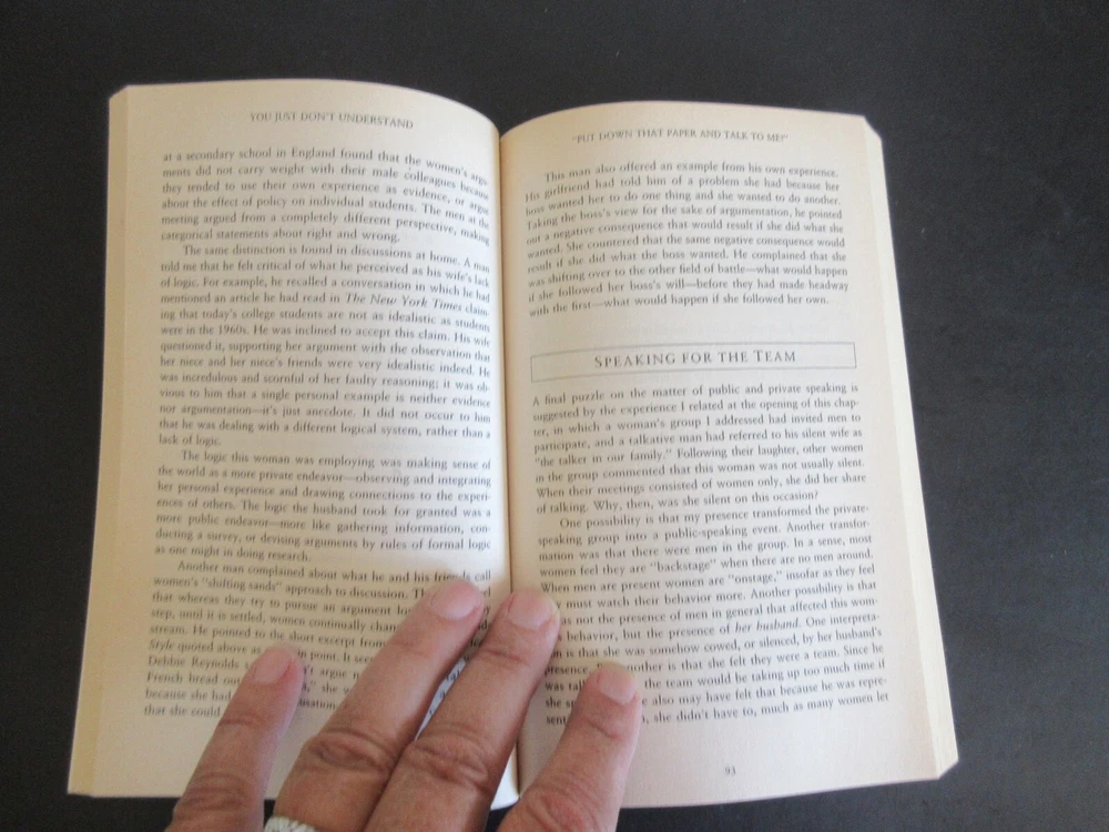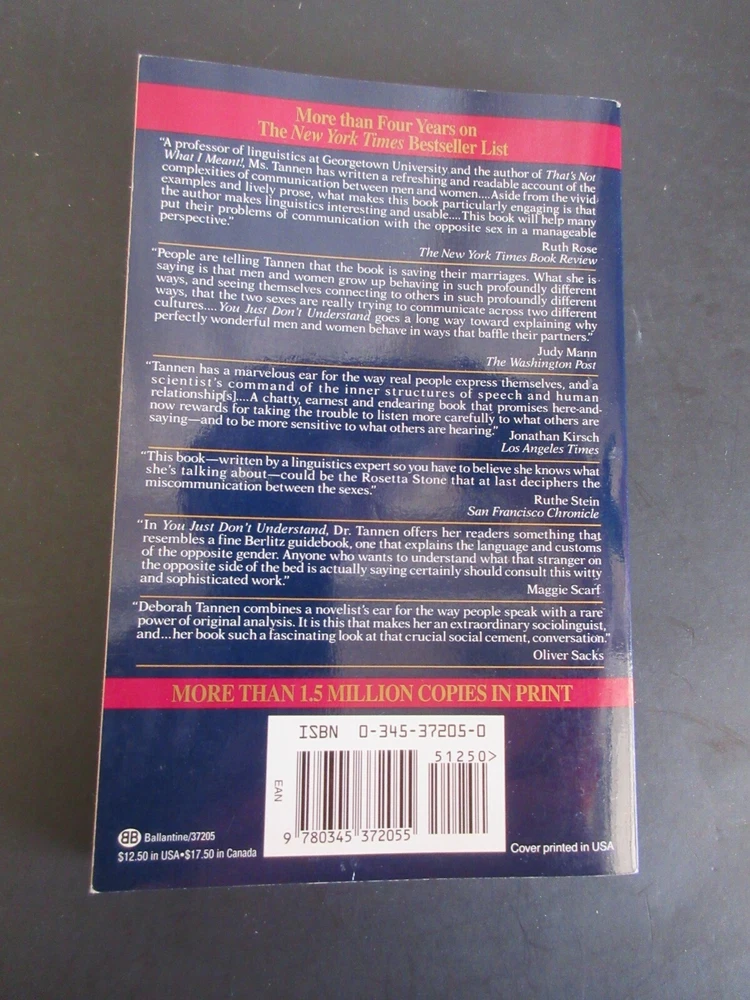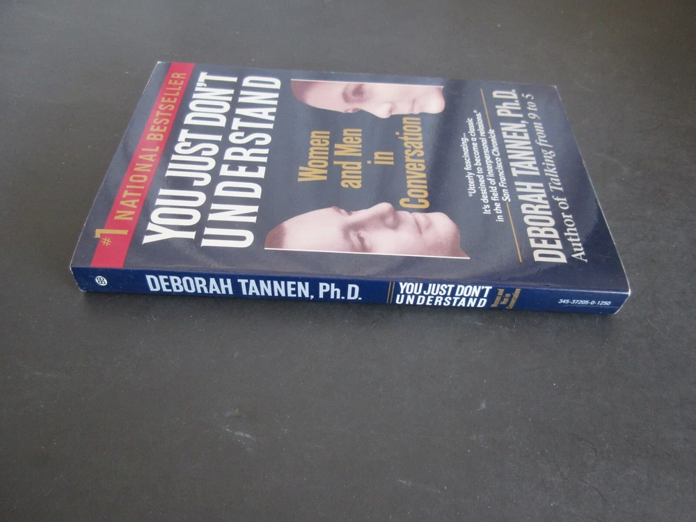 YOU JUST DON'T UNDERSTAND BY DEBORAH TANNEN 1991 Thank you for viewing our auction. Excellent Item to add to your collection. Here is your chance to increase your book collection with a book titled YOU JUST DON'T UNDERSTAND BY DEBORAH TANNEN 1991 . This is the item you will be receiving. The book is approximately 8 inches by 5 1/4 inches. Please let me know if you have any questions. Happy Bidding Joe # 26126