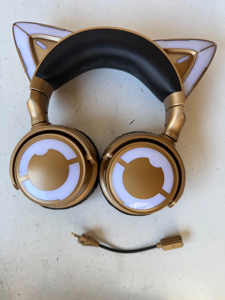 YOWU SELKIRK-4 Cat Ear Gaming Headset Gold Wired Noise Cancelling HD Microphone Description YOWU SELKIRK-4 Cat Ear Gaming Headset Gold Wired Noise Cancelling HD Microphone . Product Detail • Brand : YOWU • Model : YOWU SELKIRK-4 • Color: Gold • Type : Gaming Headset Please message me if you have any questions.