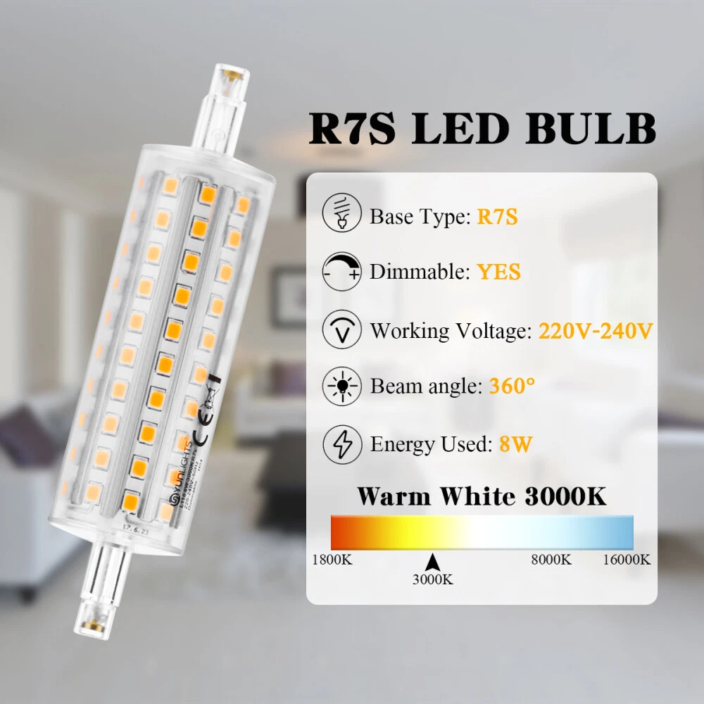 YUNLIGHTS R7S Base LED Light Bulb 8W Daylight Warm White 3000K LED Corn Light