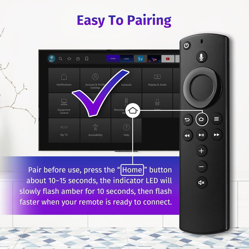 yalanle Replacement Voice Remote Control fit for Smart Stick Tv(2nd Black Product Details Package Dimensions: 6.1 x 1.65 x 0.83 inches Item Weight: 1.76 ounces Manufacturer: yalanle Brand: yalanle Special Feature: Voice Search Color: Black Max Number of Supported Devices: 1 Compatible Devices: / Replacement Voice Remote Control (2nd GEN) compatible with Smart TV Cube (2nd Gen), Smart TV Stick (2nd Gen), Smart TV Stick 4K,Smart TV Cube (1st Gen),Smart TV Cube (EX69VW),Smart TV Stick (3rd Gen), Smart TV Stick Lite and Smart TV (3rd Gen) Not compatible with Smart TV (1st and 2nd Gen), Smart TV Stick (1st Gen), or Smart TV Edition smart TVs This is voice remote control, you need to pair it firstly before you use, and below is pairing steps: Press the Home button about 8-30 seconds until the LED starts to rapidly flash amber, then the remote should automatically pair with your device Voice funtion make it easily to find, lauch and control all existing content you want, such as play music, view sports scores, check the weather, see live camera feeds, and control compatible smart home devices With standard navigation and playback controls, you can quickly skip to your favorite scenes Information: Specification: Material:Plastic Battery Type:2 AAA batteries (Not included) Compatible with : Smart TVs Cube (2nd Gen); Smart TVs Stick (2nd Gen); Smart TVs Stick 4K; Smart TVs Cube (1st Gen); Smart TVs (3rd Gen, ); Smart TVs Cube (EX69VW); Smart TVs Stick Lite; Smart TVs Stick 2020 Release & 4K; Smart TVs Stick (3rd Gen) ; Not compatible with : Smart TVs (1st and 2nd Gen); Smart TVs Stick (1st Gen); Smart TVs Edition smart TVs; Package list: 1 * User Manual 1 * Replacement Remote Control How to Pair ? 1:If your original remote control is available: Go to Settings > Controllers & Bluetooth Devices > Smart TVs Remotes > Add New remote Then hold the home button on your new remote about 10-15 seconds and select the new remote’s name with your old remote to confirm 2:If your original remote control is not available: First you need to remove stick from tv and power from stick. Then reattach power and stick back in TV. Then Press the Home button about 10-15 seconds until the LED indicator starts to rapidly flash amber for 10 seconds, then your remote will automatically pair with your device. 3:If your remote doesn't work after pairing,it may be caused by too many devices paired with the TV,please make sure no other remote paired with your device or you can watch the video on the page to get help.