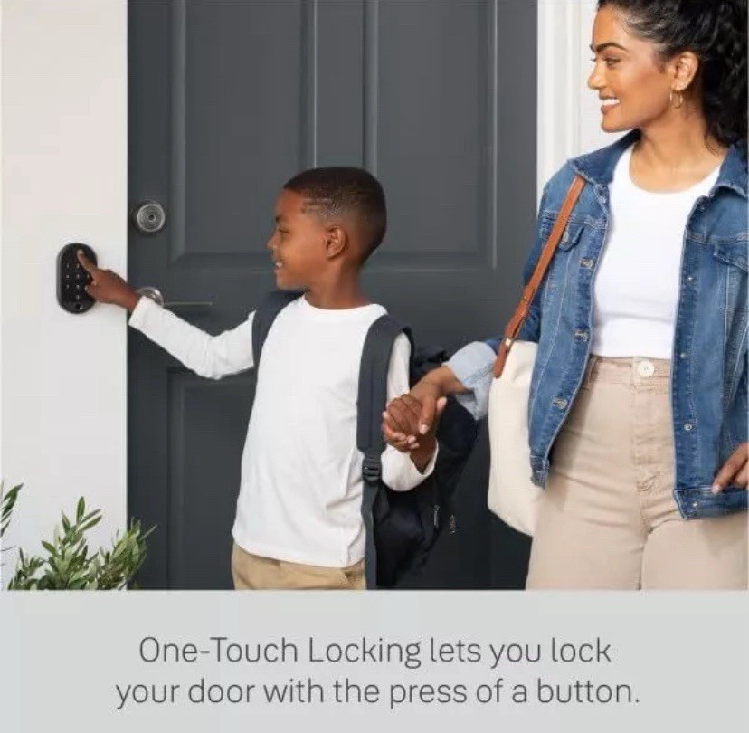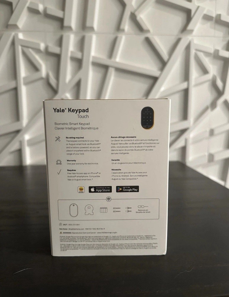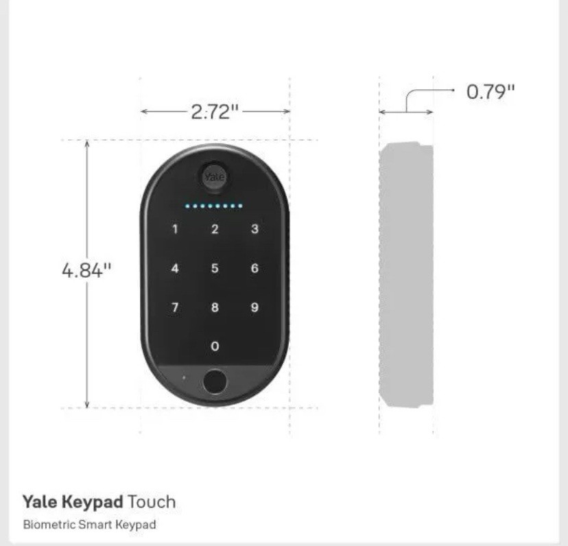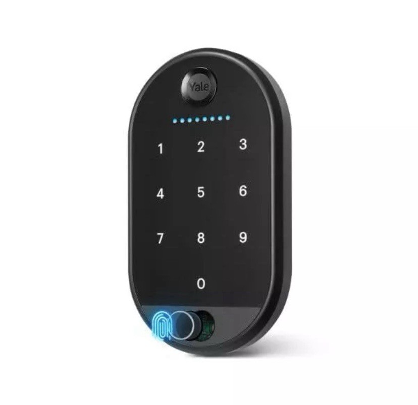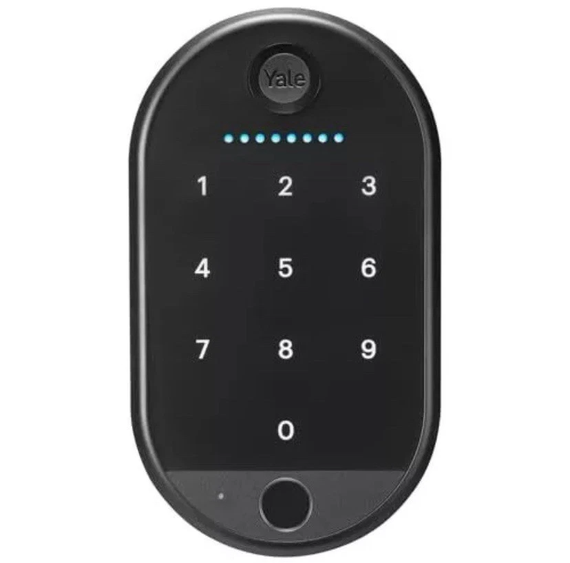 Secure your home with the Yale Keypad Touch Fingerprint Door Lock, an advanced solution for your front entrance, side door, or any other door needing a touch of security. The matte black finish and oval shape complement a variety of doors, and the universal mounting ensures easy installation on most surfaces. Enjoy the convenience of keyless entry with features like fingerprint recognition, passcode unlock, and a user-friendly one-touch lock. The accompanying app for iOS and Android provides full control over the lock, making it simple to manage access and monitor battery life. The package includes everything you need: mounting adhesive, hardware, and 4 AAA batteries to get started right out of the box.
