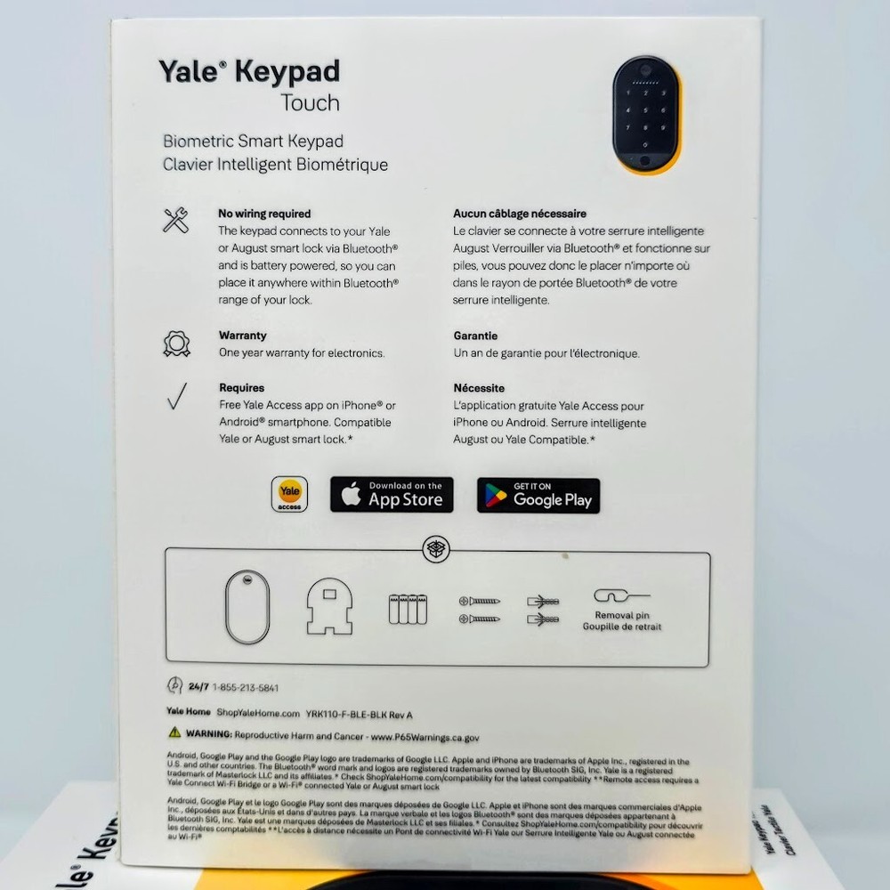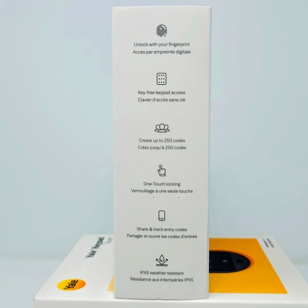 New Product! Yale Keypad Touch Product Description Yale's newest Keypad Touch — the perfect biometric companion for added fingerprint access. Pairs perfectly with the new Yale Approach Lock with Wi-Fi, or your favorite August smart lock to make your home smarter than ever. Convenient and secure fingerprint access Go 100% key-free, and phone-free with custom key code entry. Installs anywhere around your door for a simple set up* One-touch locking for ultimate convenience. Back-lit buttons for access even at night. What's Included Yale Keypad Touch 4 AAA Batteries Adhesive Pad & Mounting Screws Lock Compatibility Yale Approach Lock with Wi-Fi August Smart Lock + Connect August Smart Lock Pro + Connect August Wi-Fi Smart Lock Key Features Activity Feed & Smart Notifications Custom Key Codes for Shared Access Secure Fingerprint Access Convenient One-Touch Locking IPX5 Rated for All Climates Pairs with Compatible Smart Locks Access your home with just your fingerprint. Experience unrivaled convenience with the new Yale Keypad Touch. Your fingerprint is now the key you’ll never lose. Plus, you can easily set up custom key codes with trackable access — whether it's for yourself, when you're on the go, for family, friends, or vacation rentals. Remote access requires compatible Wi-Fi connected smart lock. Keep tabs on your door. Know who comes and goes, and whether your door is locked or unlocked with the 24/7 activity feed in the August app or Yale Access app. Plus, easily create virtual keys for your guest for extra convenience. Smart security with ultimate durability. The Yale Keypad is IPX5 rated, and was built to withstand even the most turbulent climates. Never worry about getting locked out again, even in the worst weather conditions. Shipping Information We provide free shipping on all orders. Each item is carefully packaged to ensure it arrives in the same condition as it was when shipped. We strive to ship out orders as quickly as possible to get your item to you promptly. Return Policy ALL SALES ARE FINAL STRICT POLICY: NO EXCEPTIONS FOR THE FOLLOWING Cancellations Returns Refunds By purchasing, you agree to these terms. Ensure your decision is final before completing your order. Additional Details: Items are in hand and ready to ship . Every product will be securely packaged to maintain its original quality during shipping. Once shipped, I am not responsible for any damages or issues caused by the carrier. If a package is lost or damaged, I will work with the carrier to resolve the issue. Please review all details and ensure your purchase is correct before placing your order. Contact Us If you have any questions, feel free to reach out to us via message. Thank You for Visiting!