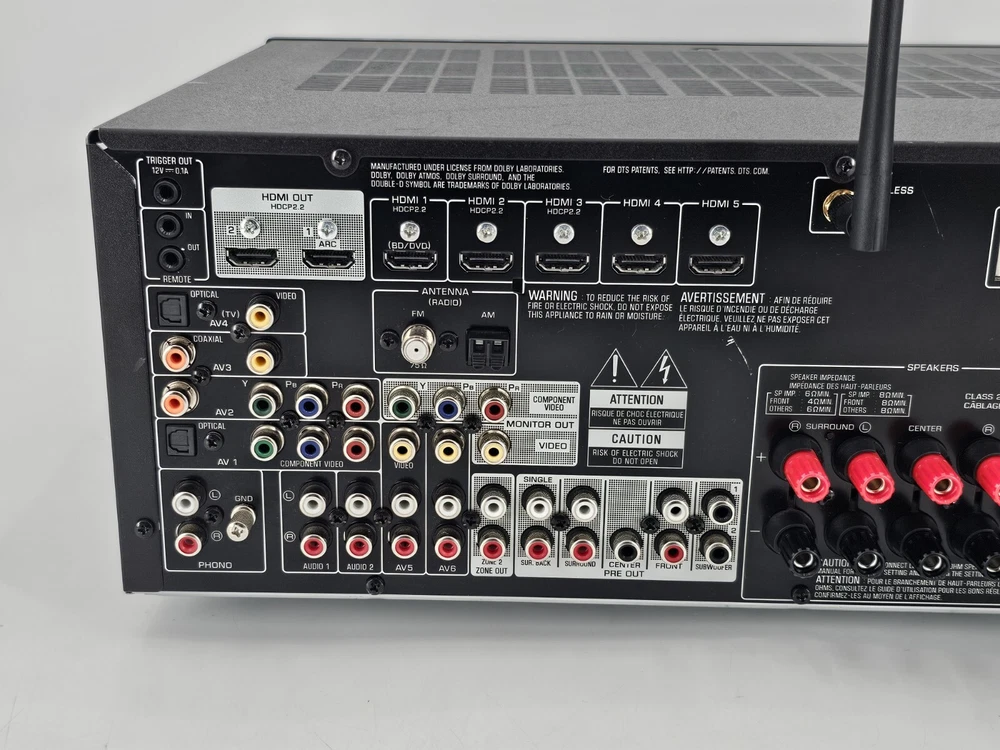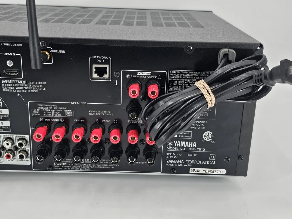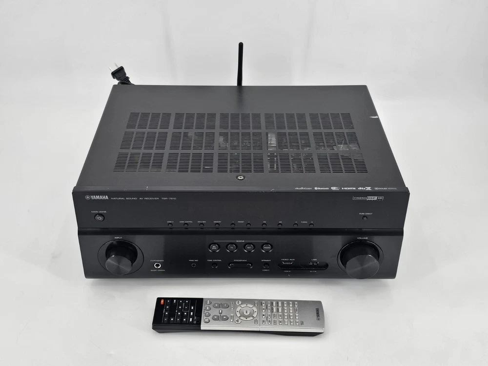 Experience immersive audio with the Yamaha TSR-7810 4K Ultra HD AV Dolby Atmos Dual HDMI Receiver. This A/V receiver boasts a sleek black design and is perfect for any home audio setup. With 7.2 channels, you can enjoy your favorite movies and music with crystal-clear sound. The Yamaha TSR-7810 supports Dolby Atmos and DTS:X surround sound formats, providing you with an elevated audio experience. It also has HDMI audio inputs and outputs, allowing you to easily connect to your home entertainment system. Get ready to enjoy high-quality audio with the Yamaha TSR-7810 4K Ultra HD AV Dolby Atmos Dual HDMI Receiver.