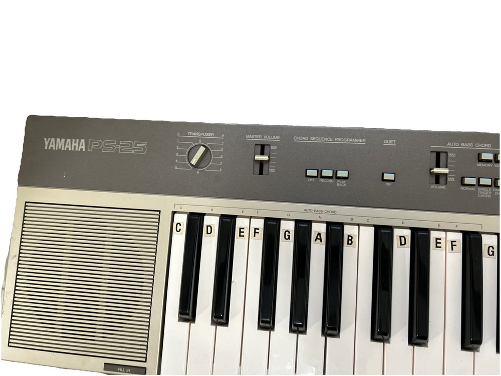 This Yamaha PS-25 electronic digital keyboard is a great addition to any musician's collection. With 49 keys and a silver color, it is both portable and easy to use. The keyboard features rhythm patterns that will help improve any beginner's skills. Whether you're a seasoned musician or just starting out, this Yamaha PS-25 is the perfect instrument for you…. Im selling at a lower price because It is missing 2 button knobs plz look at pics… plays beautiful…
