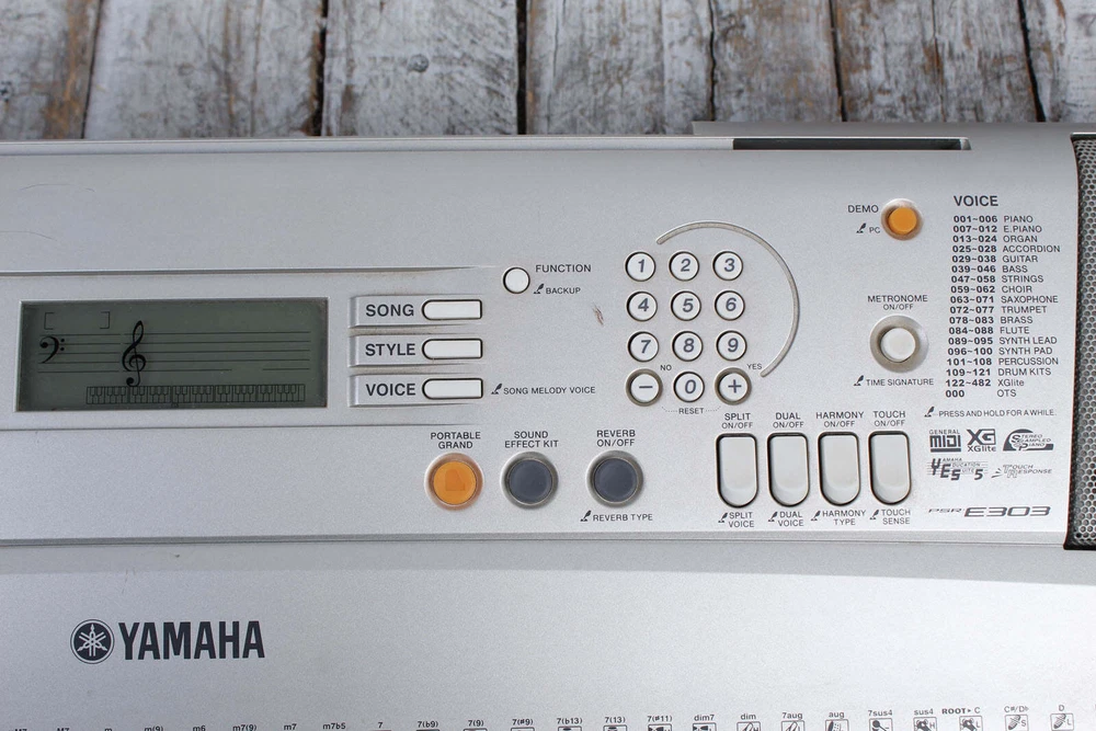 The keyboard pictured is the actual keyboard you will receive! The Yamaha PSR-E303 is a versatile and user-friendly portable keyboard designed to inspire creativity and enhance your musical journey. Whether you're a beginner or an intermediate player, this keyboard offers a wide range of features and sounds to suit your needs. This is a used keyboard and does show some signs of slight use, but has been fully tested and functions as expected. Please take a moment to review our pictures, as they accurately portray the true condition of this keyboard. Features: 61-Key Touch-Sensitive Keyboard: The 61-key keyboard with touch sensitivity provides a realistic playing experience. The keys are responsive to your touch, allowing you to control the volume and dynamics of your playing. 482 High-Quality Voices: Explore a vast library of 482 high-quality voices, including pianos, organs, guitars, strings, and more. These voices are meticulously crafted to deliver authentic and expressive sound. 106 Accompaniment Styles: Create your own musical arrangements with 106 built-in accompaniment styles. These styles provide automatic chord progressions and drum patterns, allowing you to play along and sound like a full band. 102 Preset Songs: Learn and play along with 102 built-in songs. These songs cover a variety of genres and skill levels, making it easy to learn new tunes and improve your playing. Yamaha Education Suite (Y.E.S.): The Y.E.S. feature helps you learn to play the keyboard effectively. It includes a variety of lessons, exercises, and games to help you master the fundamentals of music theory and keyboard playing. Recording Function: Capture your performances and practice sessions with the built-in 2-track recorder. You can record your playing, add accompaniment styles, and listen back to your progress. Dual/Split Mode: Play two different voices simultaneously or split the keyboard into two sections, each with its own voice. This feature is great for playing chords and melodies at the same time. Pitch Bend Wheel and Multi-Pad System: Add expression and creativity to your playing with the pitch bend wheel and multi-pad system. The pitch bend wheel allows you to bend the pitch of notes, while the multi-pad system lets you trigger various sounds and effects. Portable Design: The compact and lightweight design makes it easy to take the PSR-E303 anywhere you go. You can practice at home, take it to a friend's house, or even bring it to a gig. Power Options: The PSR-E303 can be powered by an AC adapter or six AA batteries, giving you the flexibility to play wherever you want, even without access to an electrical outlet. Key Features Brand: Yamaha Actual Weight: 10lbs 13oz Number of Keys: 61 Weighted Keys: No Touch Sensitive: Yes Number of Presets: 482 Voices Pitch Bend: No Power Supply Included: Yes Sustain Pedal I/O: Yes Sustain Pedal Included: No Internal Speakers: Yes Headphone I/O: Yes Headphone Connection Type: 1/4 Inch Input 1 Type: MIDI Output 1 Type: MIDI *For your protection all purchases over $99 will be shipped signature required. The Music Farm is an Authorized Yamha Dealer.