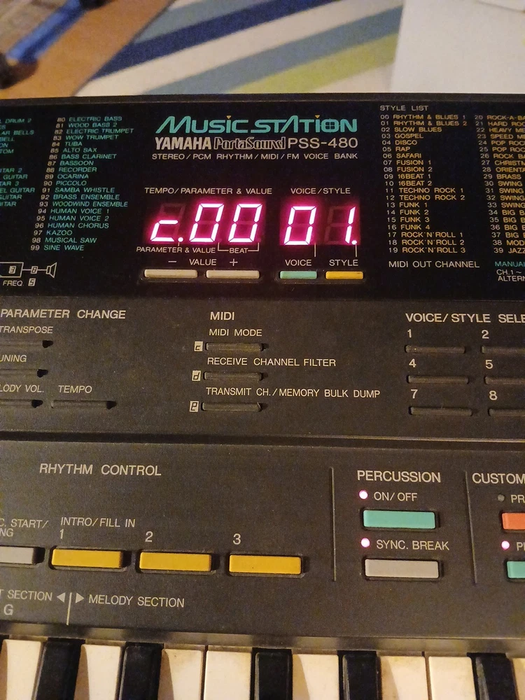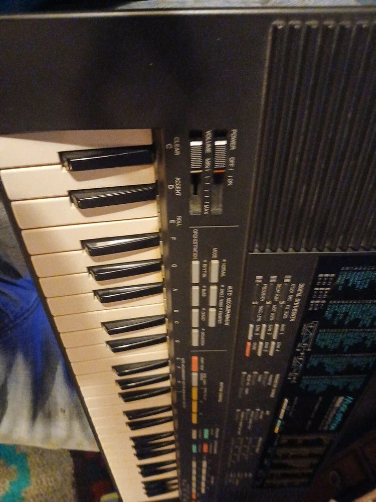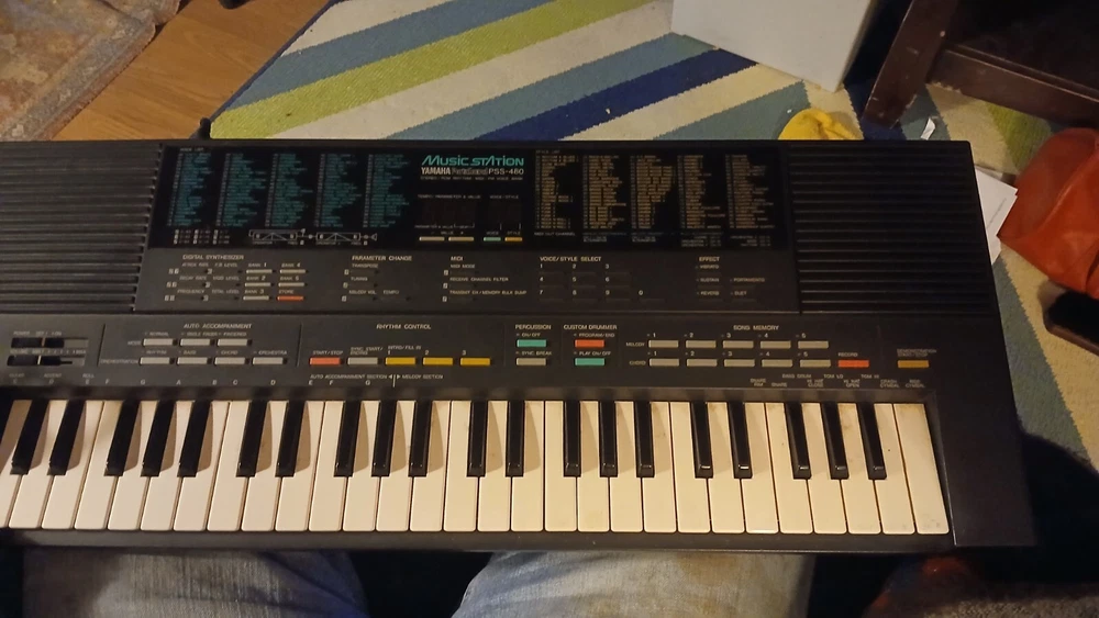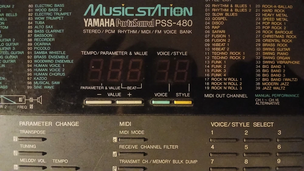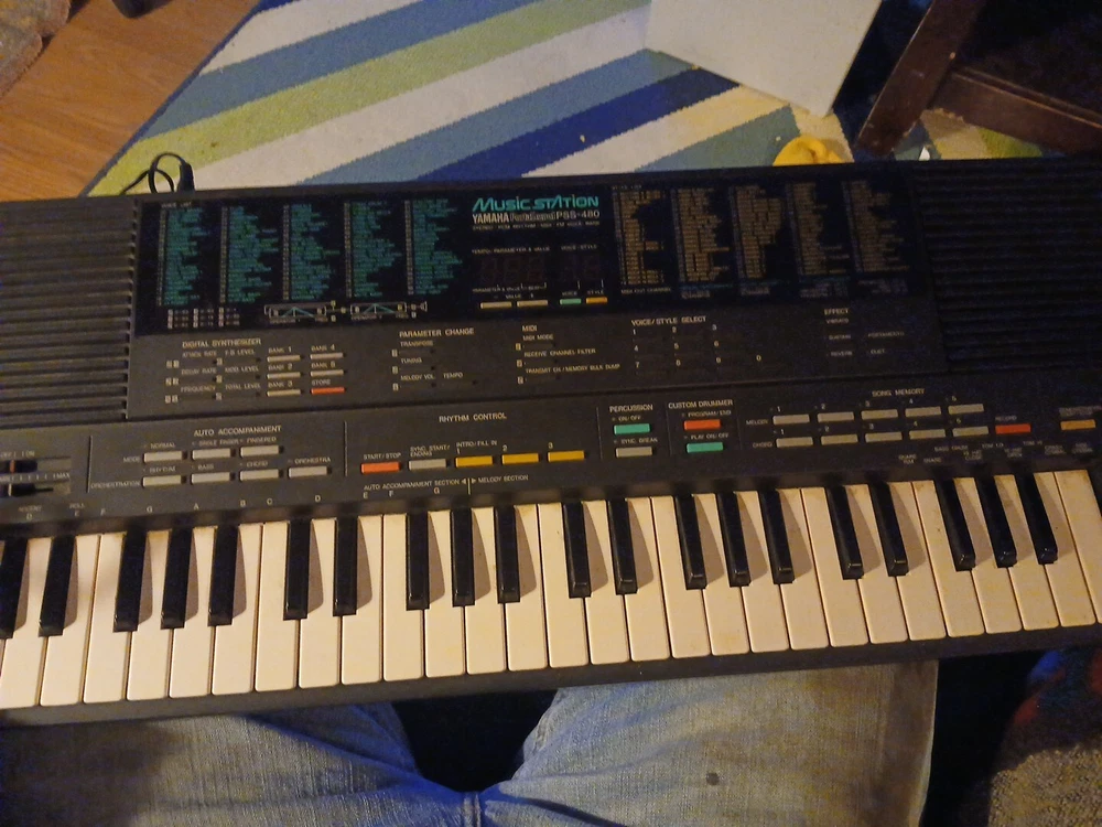 This Yamaha PSS-480 PortaSound digital synthesizer keyboard is a great addition to any musician's gear. With 49 keys and a sleek black color, it's perfect for any pianist or synth player. This synth action keyboard is built with a battery-powered option and a built-in speaker, making it easy to play on the go or in a studio. The Yamaha PSS-480 PortaSound keyboard is perfect for anyone looking for a high-quality electronic keyboard. Its features include a compact design, making it easy to transport, and it comes with a cord for easy connectivity. This keyboard is perfect for beginners and experienced musicians alike.