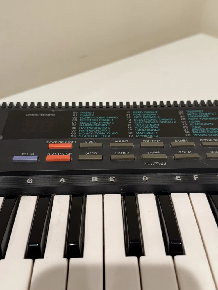 This Piano has been tested and works really well. The piano itself is in really good condition and plays well also. DOES NOT COME WITH BATTERIES OR POWER CORD.