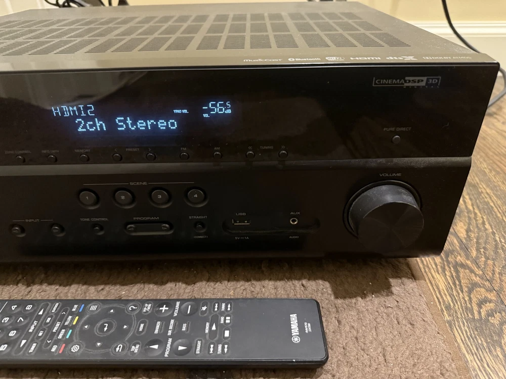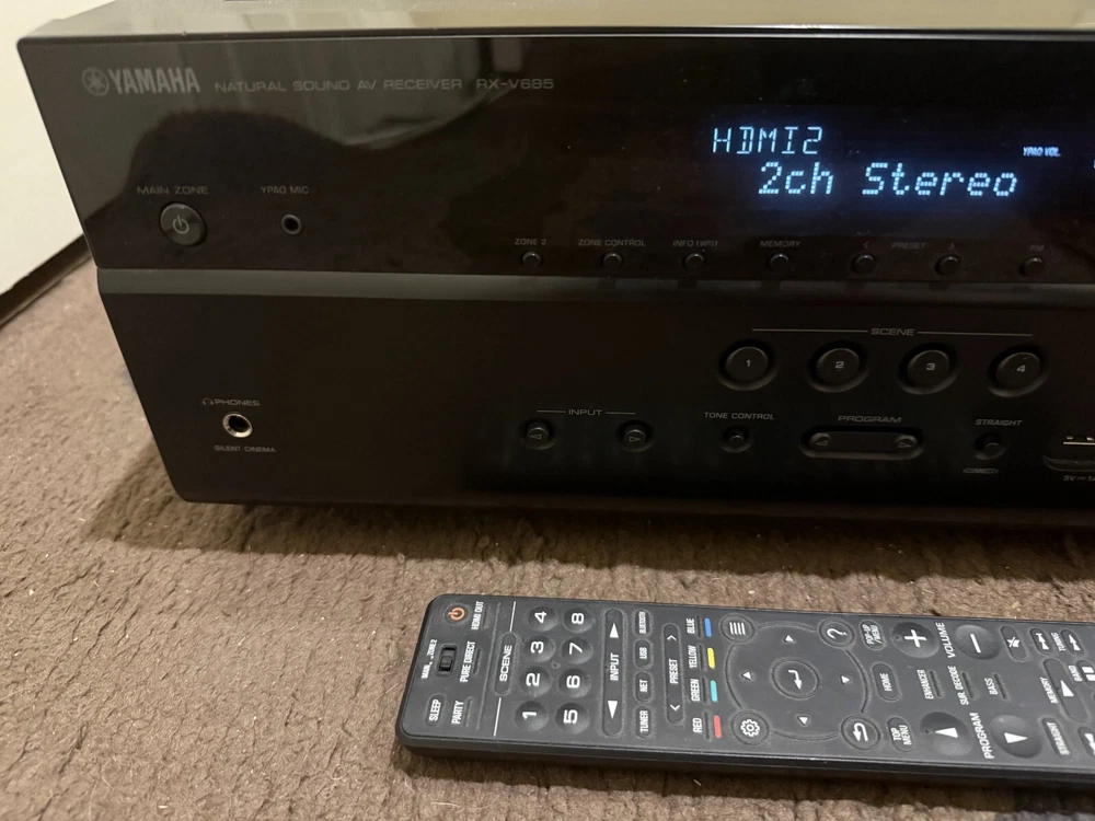 Used Yamaha RX-V685 7.2 AV Receiver 7-channel powerful surround sound - 90 W per channel (8 ohms, 20 Hz-20 kHz, 0.06% THD, 2-ch driven) - 105 W per channel (8 ohms, 1 kHz, 0.9% THD, 2-ch driven) - 150 W per channel (8 ohms, 1 kHz, 10% THD, 1-ch driven) Ability to add wireless surround speaker(s) YPAO Reflected Sound Control (R.S.C.) sound optimization MusicCast multi-room technology Music streaming services built-in HDMI® (5 in / 2 out) with Dolby Vision™ and Hybrid Log-Gamma Phono input for vinyl playback