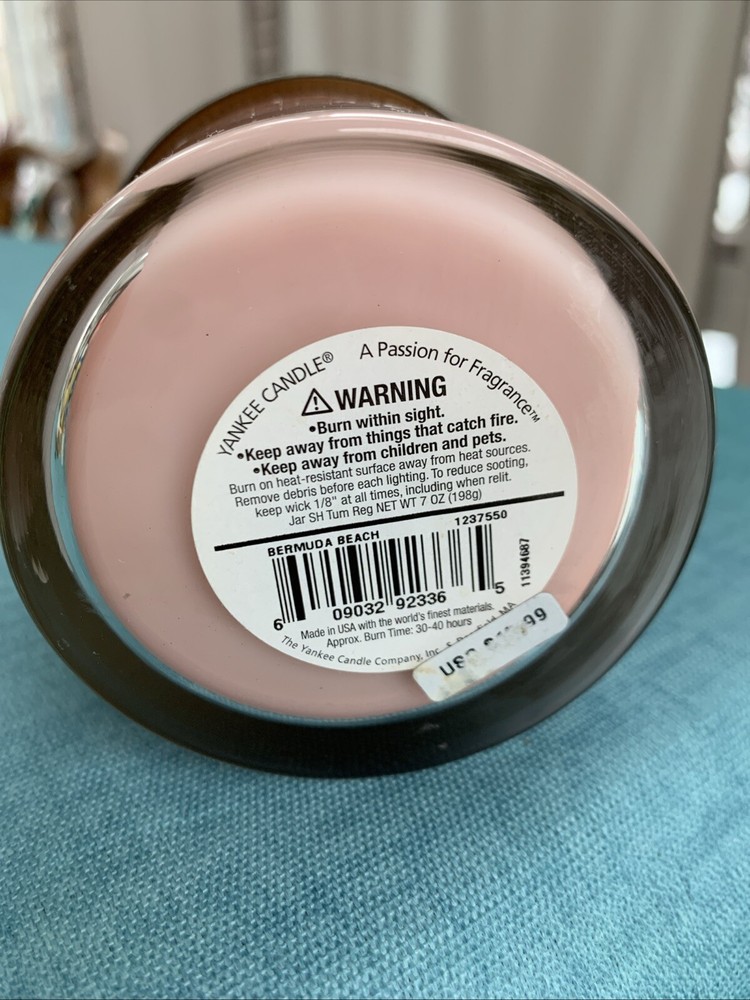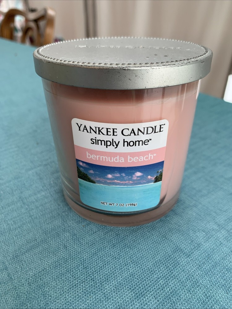 New 7oz glad bar yankee candle. Retired scent Bermuda beach. Notice some marks on the top outside of the lid. Item pictured is the item you will receive. Ships from a smoke-free pet free home.