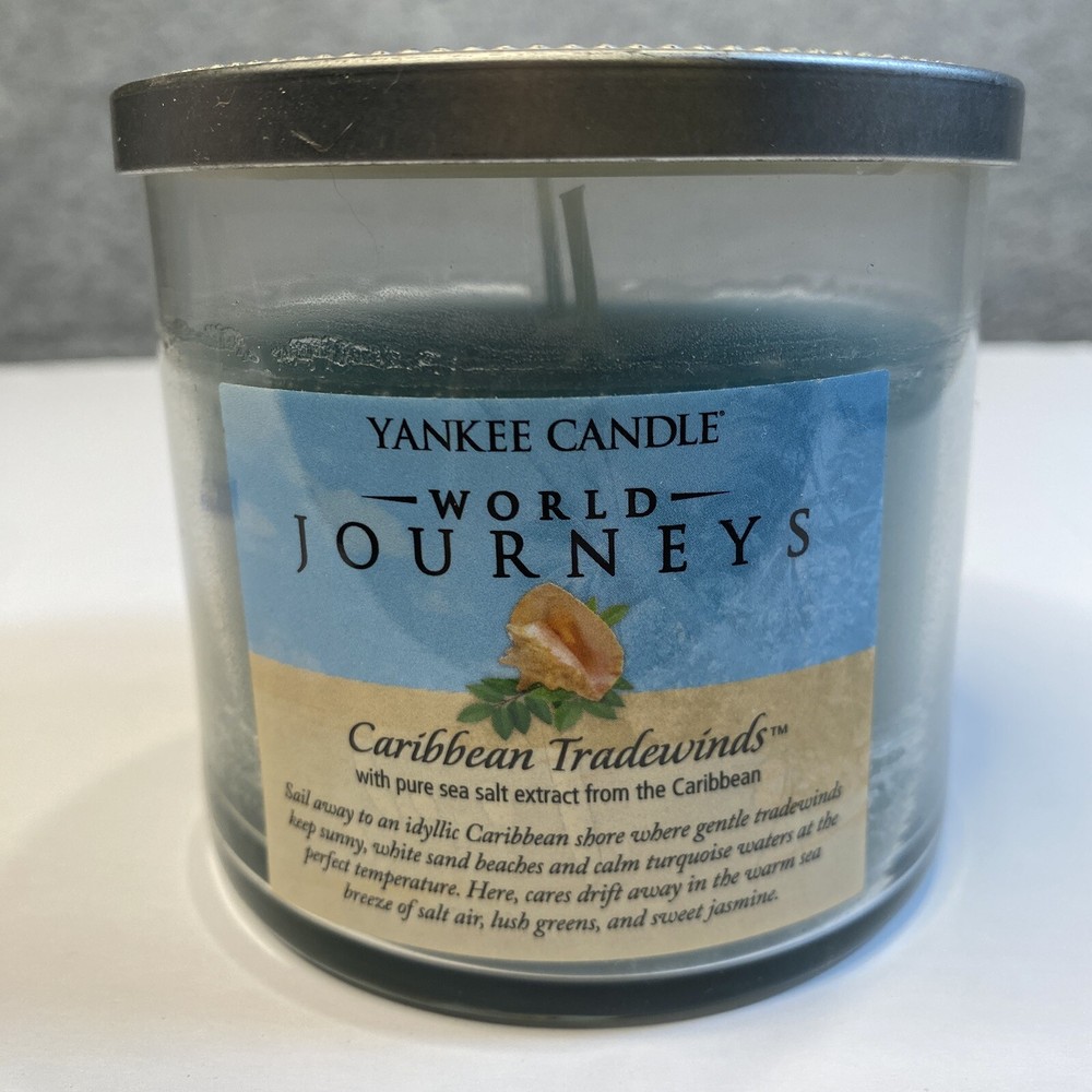 World Journeys Medium 12 oz Tumbler. Never lit. 2 wicks. Nice scent. World Journeys Medium 12 oz Tumbler. Please see pictures for details and condition of wax. Wax starts low, at 1 inch from top of jar. One label has a bubble. NOTE: Due to its age, the strength of the candle’s fragrance may have faded over time. Scents from a candle are highly subjective. What may be overpowering to one person, may be underwhelming to another. Ships by USPS Ground Advantage.