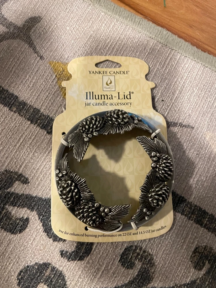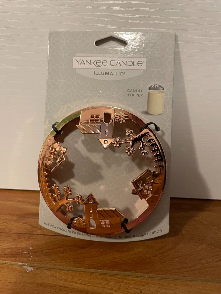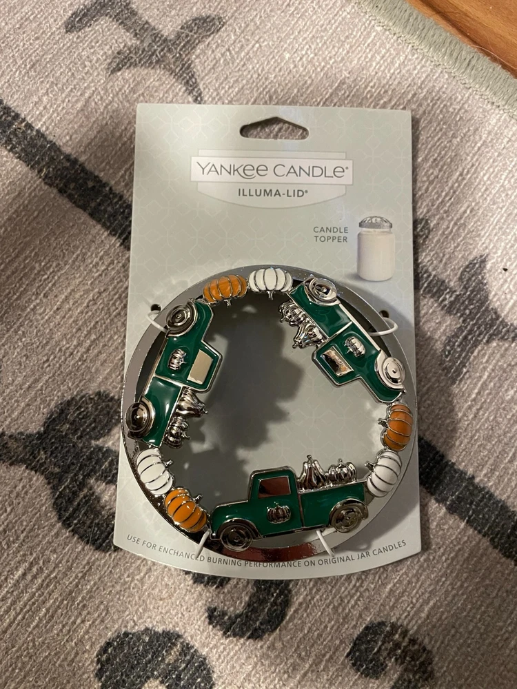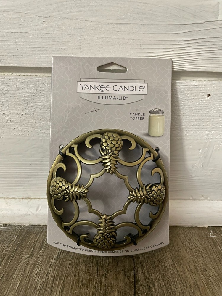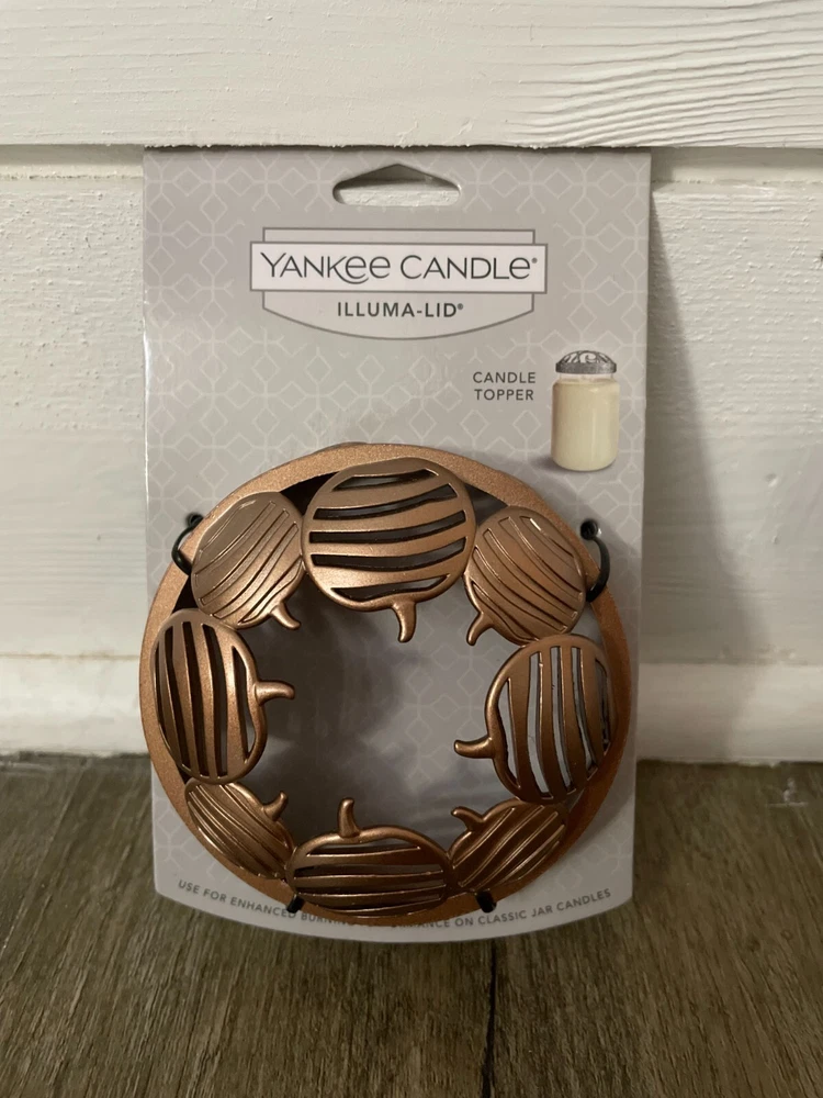 Enhance your candlelit ambience with the Yankee Candle Illuma-Lid Jar Candle Topper. Designed to fit snugly on top of your original large or medium jar candles, this decorative topper is a treasure that adds a touch of traditional elegance to any indoor setting. Its round, metallic gold finish reflects the light beautifully, creating a warm and inviting atmosphere. Crafted from durable metal, the topper is not only visually appealing but also practical, ensuring your candle stays protected while releasing its fragrance. Whether it's part of your seasonal decor or a permanent fixture in your home, this small yet striking candle topper complements the classic style of your space.