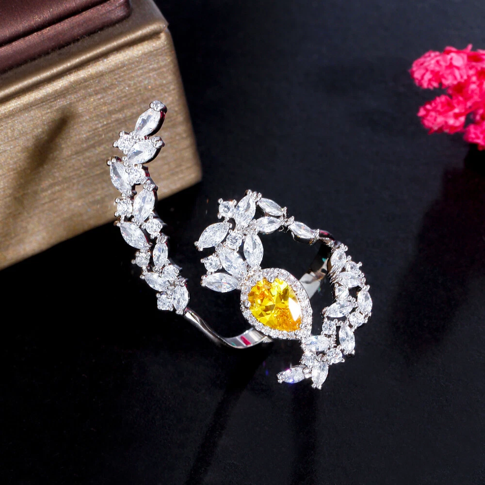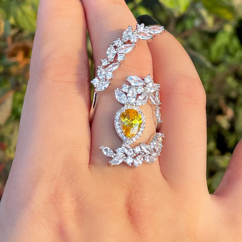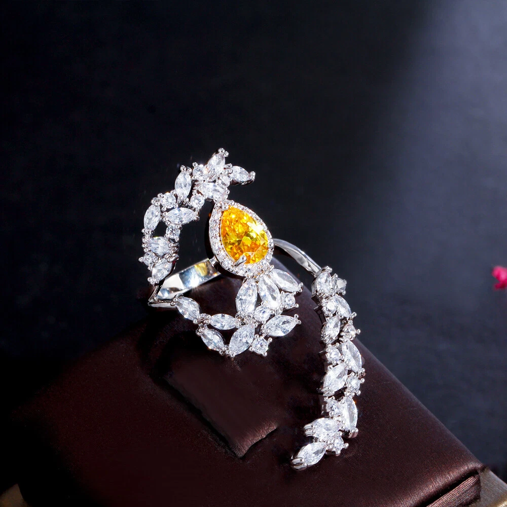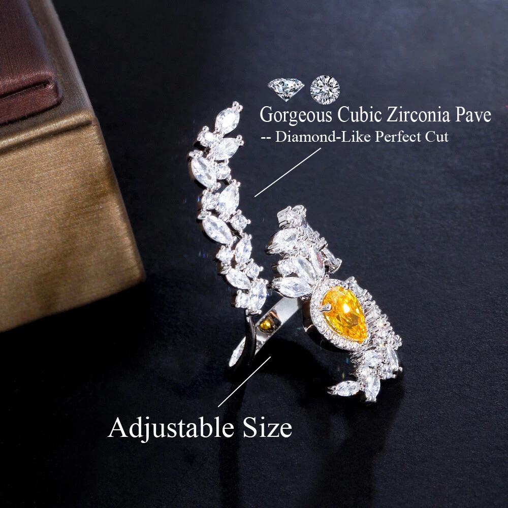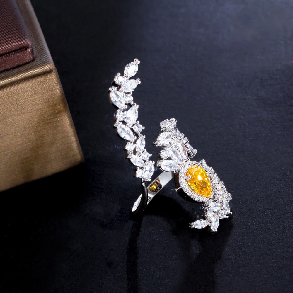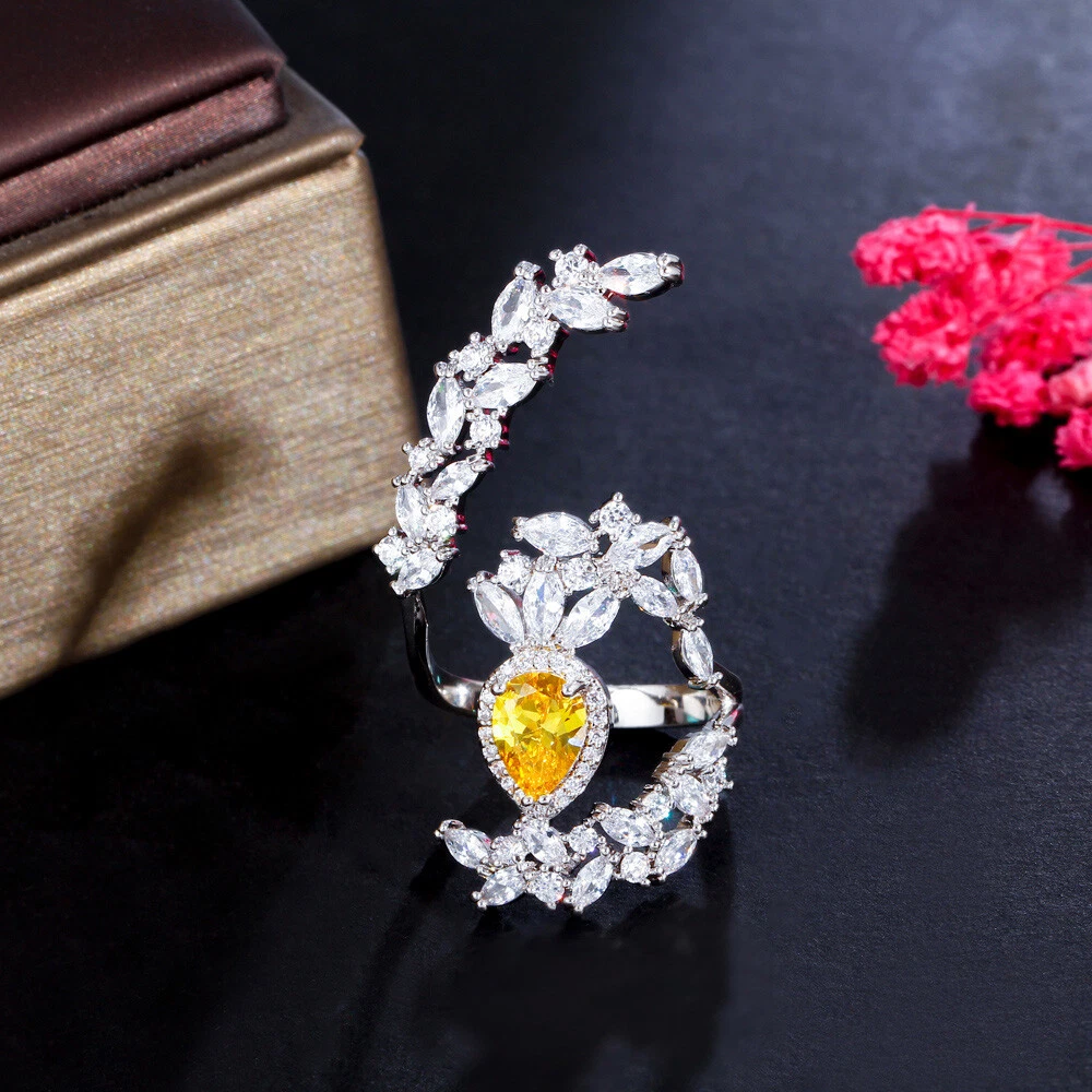 Yellow Cubic Zircon Big Cocktail Party Open Ring Silver Plated Jewelry Accessory Specifications: Metal Color : Silver Plated Ring Size : Adjustable Fit for : Brides ,Bridesmaid , Women , Girls , Wife , Lover , Mother , Fiancee , etc . Suitable for many occassions : Wedding , Party , Engagement , Prom , Valentine's Day, Anniversary , Birthday ,etc . Features: 1. 100% Brand new and high quality. 2. Unique and Fashion Design , Famous Brand Dress Jewelry Accessiores. 3. Cubic Zirconia Material , Diamond -like Brilliance. Package Includes: 1Pc Ring Payment Delivery details Terms of sales & Feedbacks About us & Contact us Our commitment Payment 1. We only ship item to your Ebay verified address . Please Make sure all address are the same 2.Please leave note in ebay when making the payment if you have any special request (colors/size). Delivery details We only send items to the registered eBay address.Items will be shipped within 2 business days from the date payment is received (not include public holiday and weekend) . As per eBay regulations, import duties, taxes, and customs charges are the buyer's responsibility. Please check with your country's customs office to determine what these additional costs may be prior to bidding or buying. Terms of sales & Feedbacks After-Sale Please contact us to request a return/replace/refund authorization .It will be best if you use ebay message to contact me. 1, Return and replacement request is available only the requests within 30 days after parcel received. 2, Returning the item as the same condition as received. Situation and solution Defectives ---Please contact us and provide a photo of the defective part. After situation confirmed,we will offer you refund/return/replacement according to the situation Not as Described ---Please contact us and provide a photo of the wrong part. After situation confirmed,we will offer you refund/return/replacement according to the situation Not Received ---Please undersatnding shipping on the way was out of our control ,because of the busy shipping season,holidays,bad weather or force majeure etc. It may be delay for days. But if it took too much time and not deliveried, Please message me, I will offer you solution for it. Feedbacks 1. If you are satisfied with our service, please leave us a + Good feedback and rate the details of the transaction (DSR) with a. . When you rate the shipping time part please take international transit into consideration.] Your recognition will make us more confident to develop business and serve you better. 2. Please contact us first if you have any problem with the items,we will solve it in time ! 3. Please do not leave Neutral or Negative Feedback before you contact us, Thanks For Your Business ! About us & Contact us Working time: Chinese time(Eastern eight zones):Monday to Friday ,9:00 am to 6:00 pm. We do not work on chinese legal holiday. Message reply: We will reply all messages within 24 hours of business time. Please contact us via ebay message, it was the best way for both you and us to solve problems. Any questions or anything you need, please feel free to contact us. Our commitment 1.Wholesale price will be offered to you if you need in bulk ! 2.About Size