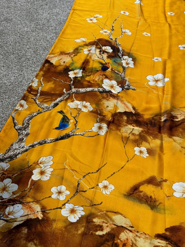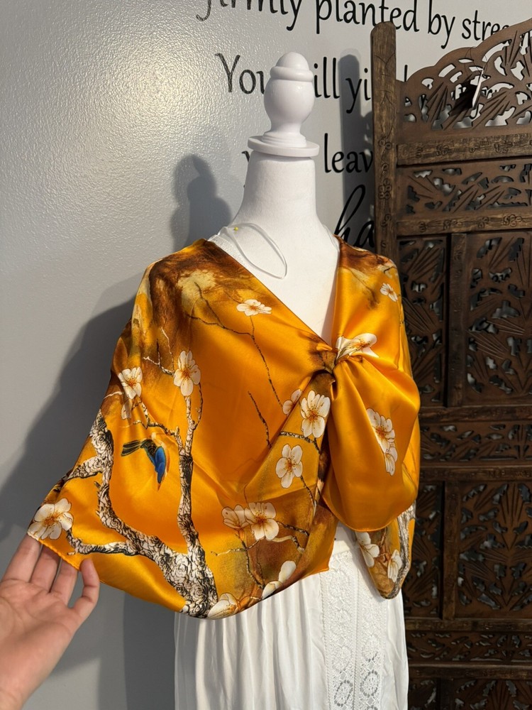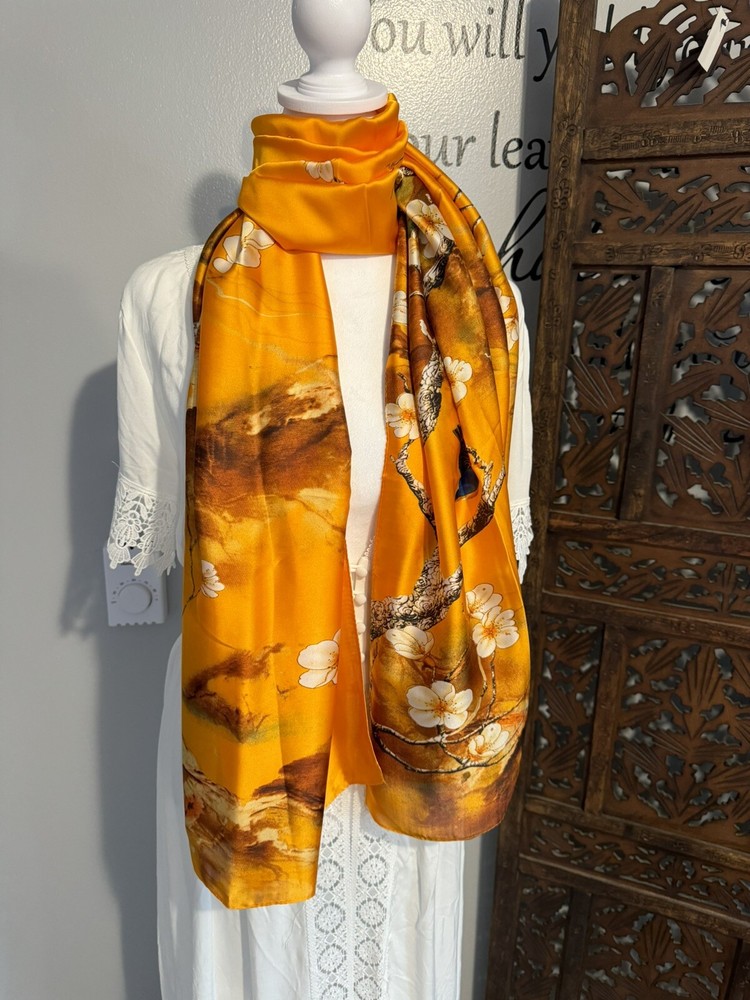 Yellow floral scarf, 69” x 30”, can be worn as a shawl or head scarf accessories Material: polyester