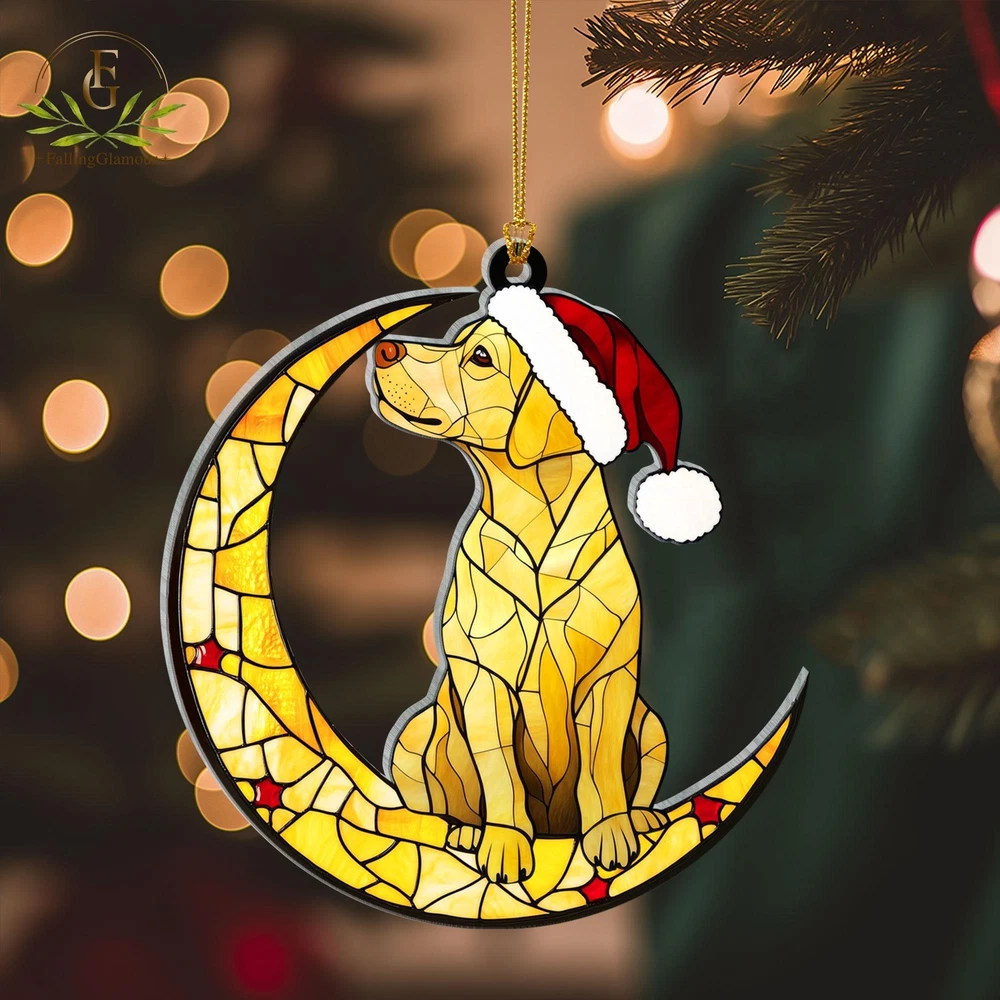 Yellow Labrador Retriever Christmas Tree Acrylic Ornament Funny Dog Christmas