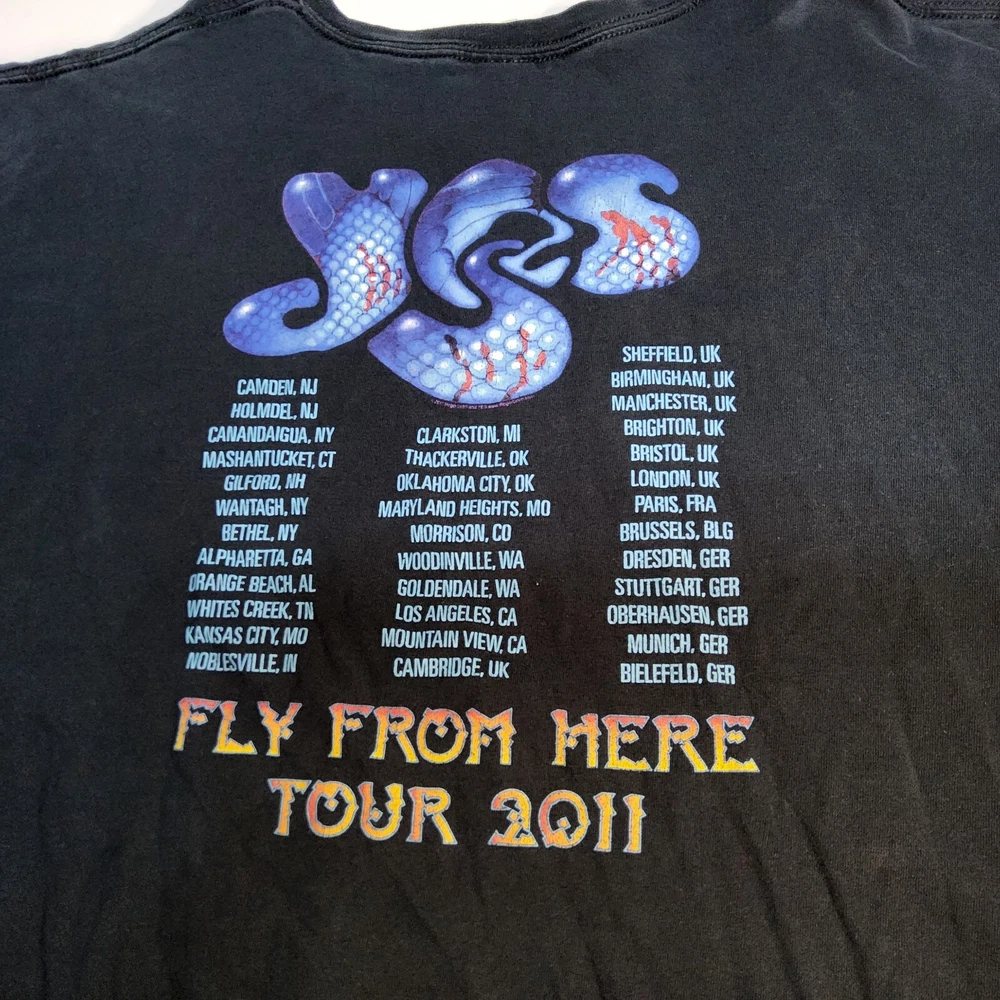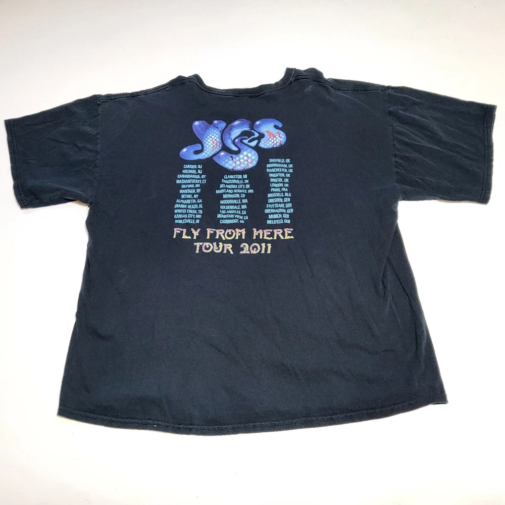 ###All clothes come as is. All pre-owned clothes from thrift stores,yard sales,etc. have NOT been washed by me. You will have to of course wash them. Plus, my washer is horrible,leaves lint,and don't have a dryer. I spot clean what i can with shoes. The restnis up to you. Please note this in condition of buying pre-owned clothes from my ebay shop.### Yes 2011 Tour T Shirt Fly art From Here ROCK Band gildan cotton graphics xxl Notice in pic under frontgraphic there are a few small light colored stains. Please note condition before purchase. Always open to offers. Not attached to anything in shop. Here to keep product and revenue flowing,not hoarde. So feel free to write me with offers. I am very receptive. Please check out my laser cut art work available here as well. Not officially a "same day shipping" seller, but i live close to 2 post offices and make multiple trips daily. You'll more than likely to get your package out same day given enough handling time. If not, then 1st thing next morning. Unless you order on Saturday close to cut off time, then Monday morning. I won't apply to be 1 day processing seller because i can be downgraded if I'm not able to fulfill 1 day agreement for whatever reason. Just know, you can get that service from me. Unofficially. Thanks for shopping with TreasureSuite.