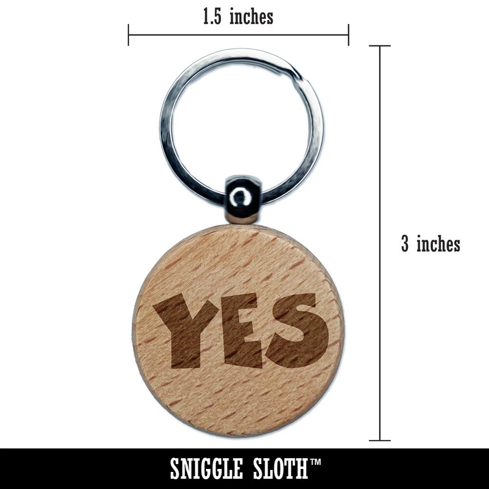 Yes Text Engraved Wood Round Keychain Tag Charm