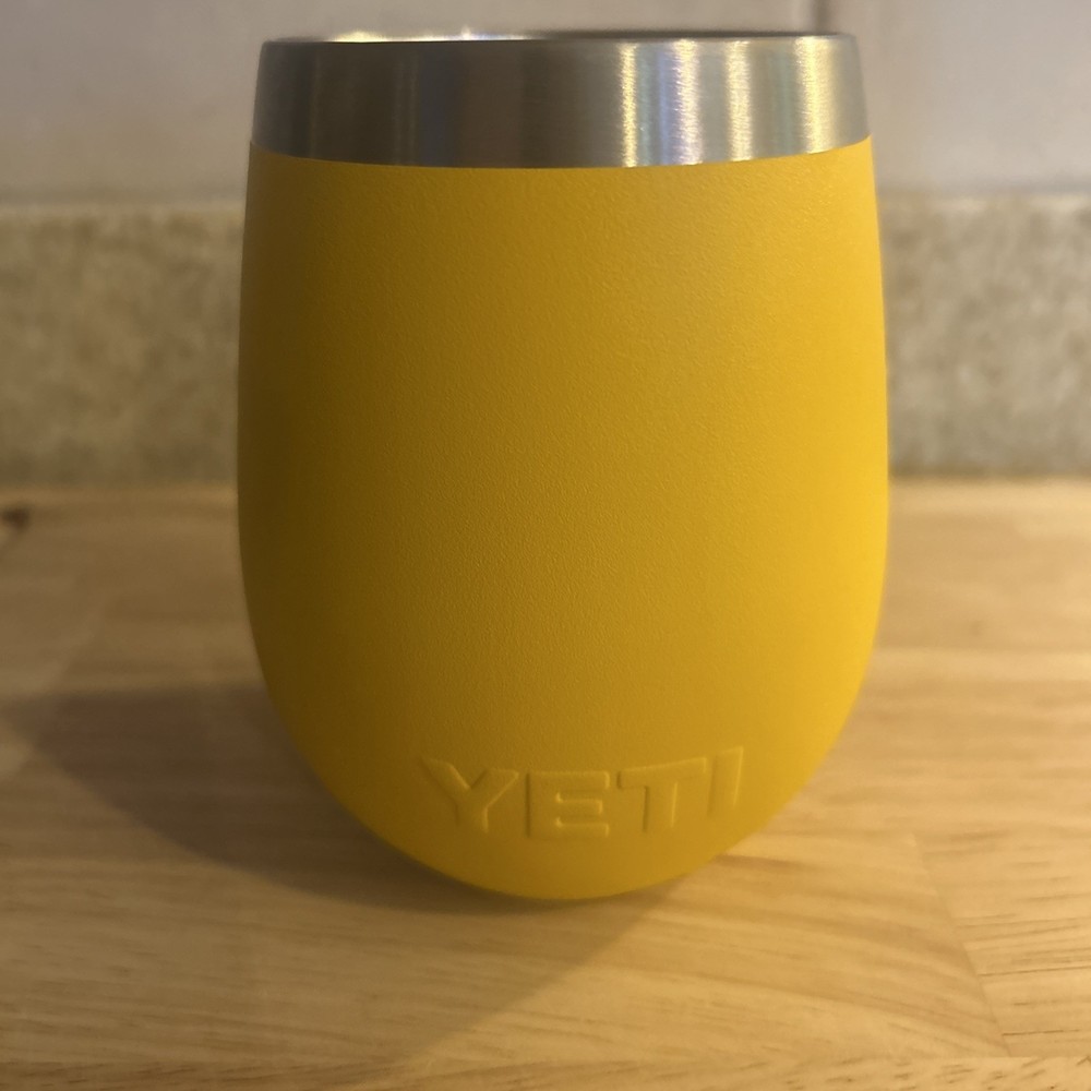 This Yeti Rambler is a must-have for outdoor lovers! The Alpine Yellow color is vibrant and eye-catching, while the stainless steel construction keeps drinks hot or cold for hours. It's the perfect size for wine, super durable, and easy to clean—great for camping, picnics, or just relaxing at home. The insulation works like a charm, and the no-sweat design is a nice bonus. Even though it's discontinued, snagging one feels like a win!
