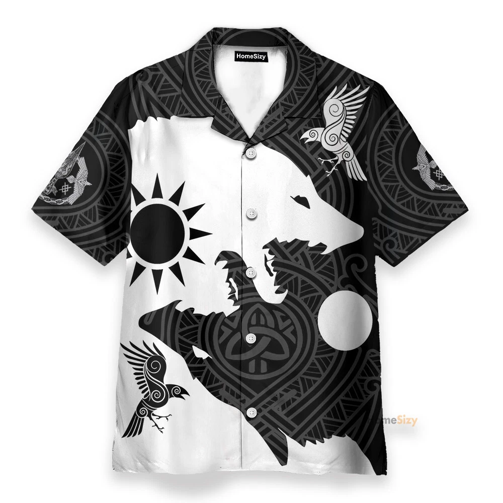 Yin Yang Wolf And Raven Hawaiian Shirt Beach Shorts