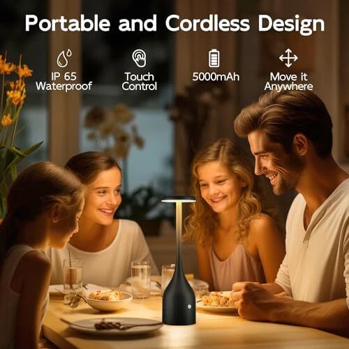 Italian Design Table Lamp:Small LED cordless table lamp combines minimalist design,wireless convenience,and space-saving features which make it a versatile lighting option for any limited space Rechargeable Battery Powered Table Lamp:Built-in 5000 mAh rechargeable battery, can be used for 20~42 hours,chargeable table lamp fully charged by USB C cable for 6 hours Dimmable Cordless Lamp: Stepless dimming brightness(100%-3%); Color temperature range: 2700K-4000k-6500K; Switch the light mode by a touch, long press to dim the light brightness Portable Lamp: It can work without cords. For outdoor, it can be a patio lamp or restaurant table lamp; For home,it can be a dining table lamp,kitchen lamp .....everywhere has no plug IP65 Waterproof for Outdoor Lighting: This lamp has been made weatherproof layer treatment, not afraid of rain erosion, to maintain a timeless elegance