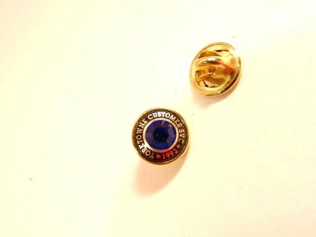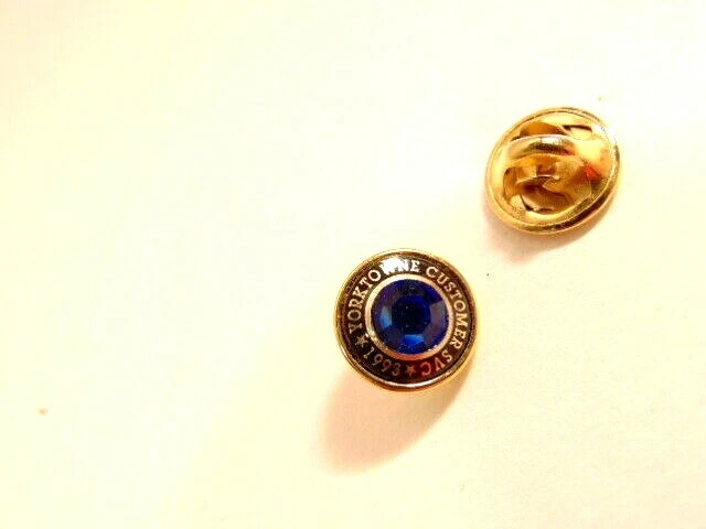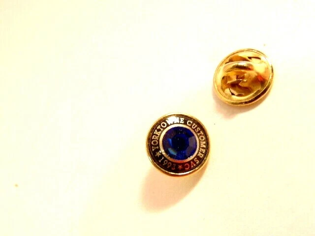 Here is a pre-owned gold Yorktowne Customer Svc 1993 tie tack with a blue stone. Nice condition. Please see pictures and ask any questions . Thank you for looking. (Inv 18,412)