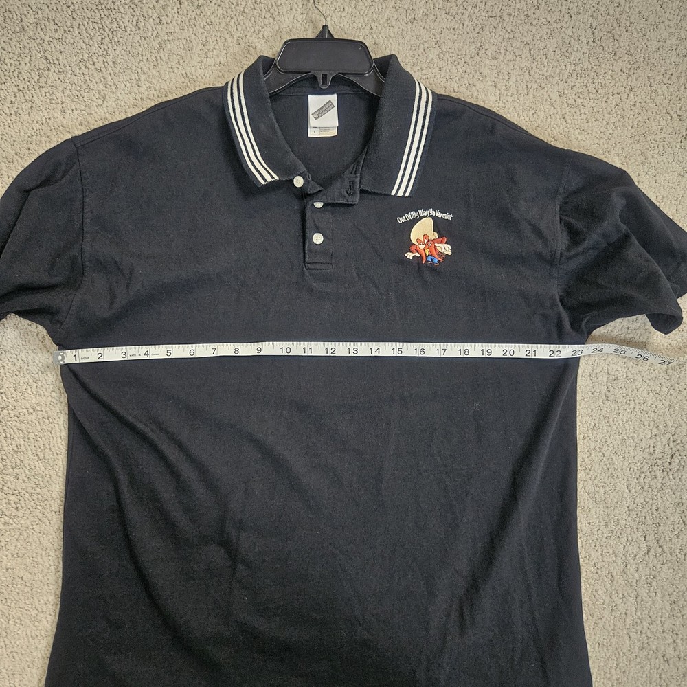 Yosemite Sam Warner Bros Black Embroidered Short Sleeve Polo Unisex Large "Get out of my way ya varmint" Embroidered on chest Good Pre-owned Condition