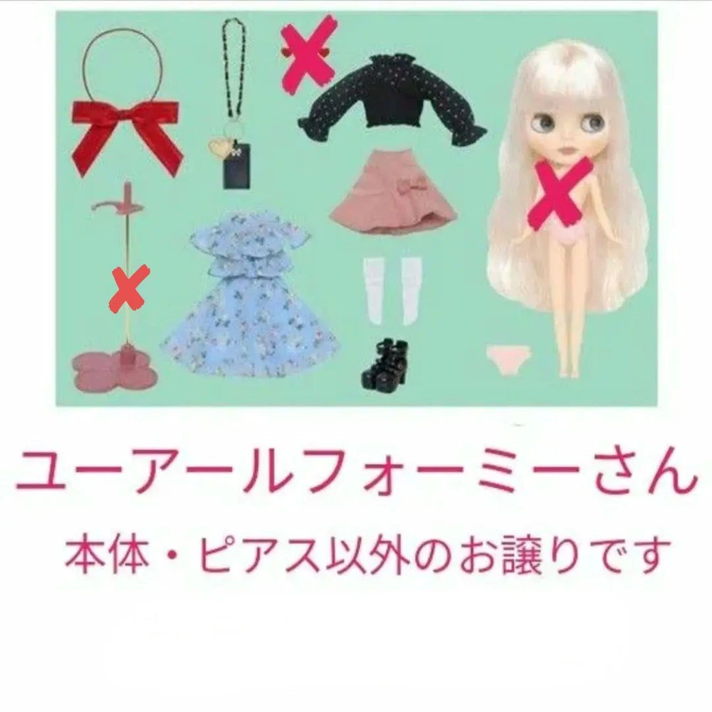 You Reformy Outfit Features Specifications You Reformy Outfit This is a limited edition outfit from TOP SHOP for the Neo Blythe doll, specifically designed for the character "You Reformy." The set includes various clothing items and accessories, perfect for collectors and fans. Included Items: One-piece dress Blouse Skirt Ribbon hair tie Smartphone shoulder bag Socks Shoes Shorts Cosmetic box Heart-shaped earrings Note: The stand is not included in this set. All items have been carefully removed from their packaging and stored in a cool, dark place. This outfit is a great addition to any Blythe collection, showcasing the unique style and charm of the Neo Blythe series. Item Title You Reformy Outfit Description Messages Thanks for taking a look at my products. We are located in Japan, and we hope you will consider them. We also sell a variety of other products, and we hope you will considerpurchasing them as well. You can also save on shipping costs by purchasing multiple items. If so, please let us know about it. If you are looking for a particular item that is not in my listing, pleasedo not hesitate to contact us. We will look it for you. Contact us International Buyers -Import duties, taxes, and charges are not included in the item price orshipping cost.These charges are the buyer's responsibility. -Please check with your country's customs office to determine what theseadditional costs will be prior to bidding or buying. -These charges are normally collected by the delivering freight (shipping)company or when you pick the item up-do not confuse them for additionalshipping charges. -We do not mark merchandise values ??below value or mark items as “gifts”-USand International government regulations prohibit such behavior. payment We accept PayPal,Payoneer and other payments. Shipping Our shipping methods is mainly using FedEx. Shipping is generally done within 5-10 days or shorter. The tracking number will be sent to you as soon as it is issued. We strictly adhere to handling time in our shipping process. Copyright 2020 Trans solutions at ebay All rights reserved.