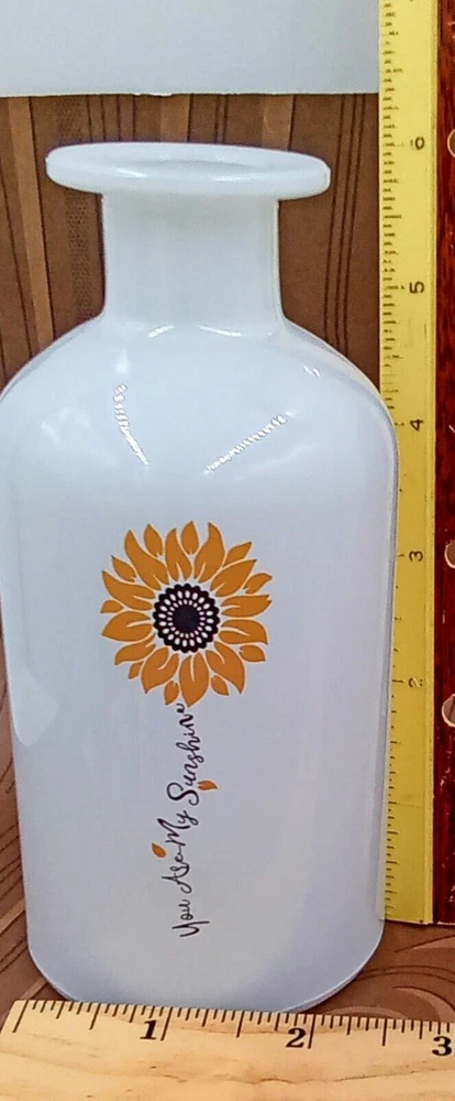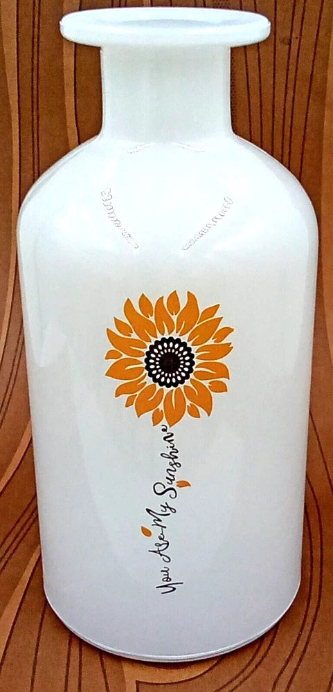 Type: Bottle Vase Finish: Glossy Brand: WT Collection Country/Region of Manufacture: China Material: Glass Department: Adults Shape: Bottle Mounting: Free Standing Additional Parts Required: No Color: White Features: Decorative, Quote: You are my sunshine Style: French Country Room: Any Room Vintage: No Origin: China Personalize: No Customized: No Theme: Floral & Garden Character: Sunflower Pattern: Floral Care Instructions: Easy Care