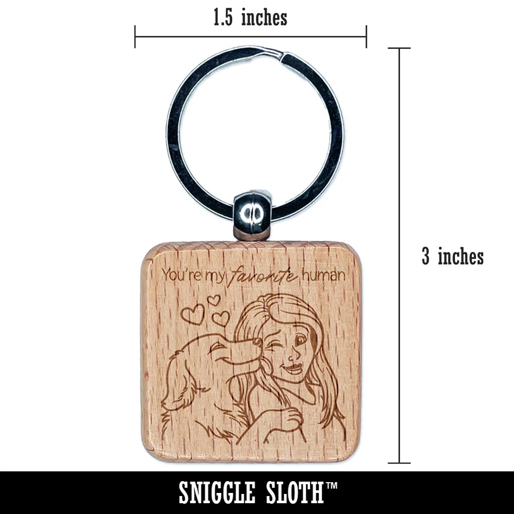 You're My Favorite Human Dog Licking Woman's Face Engraved Wood Square Keychain