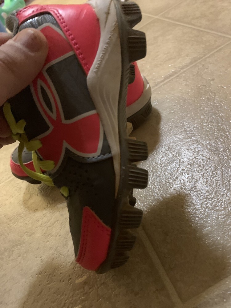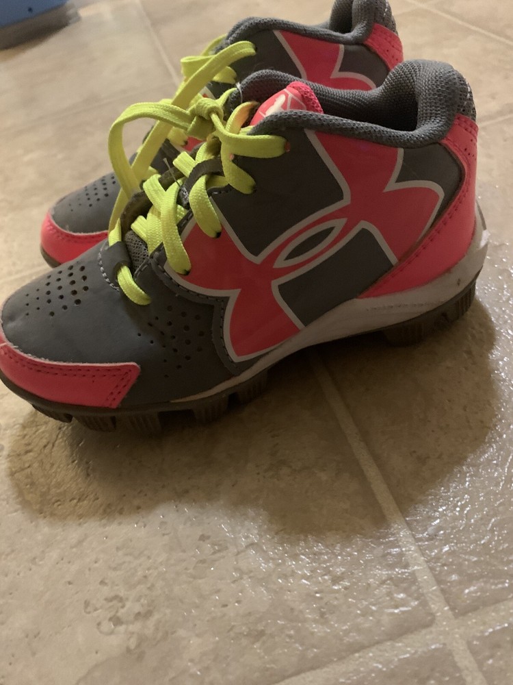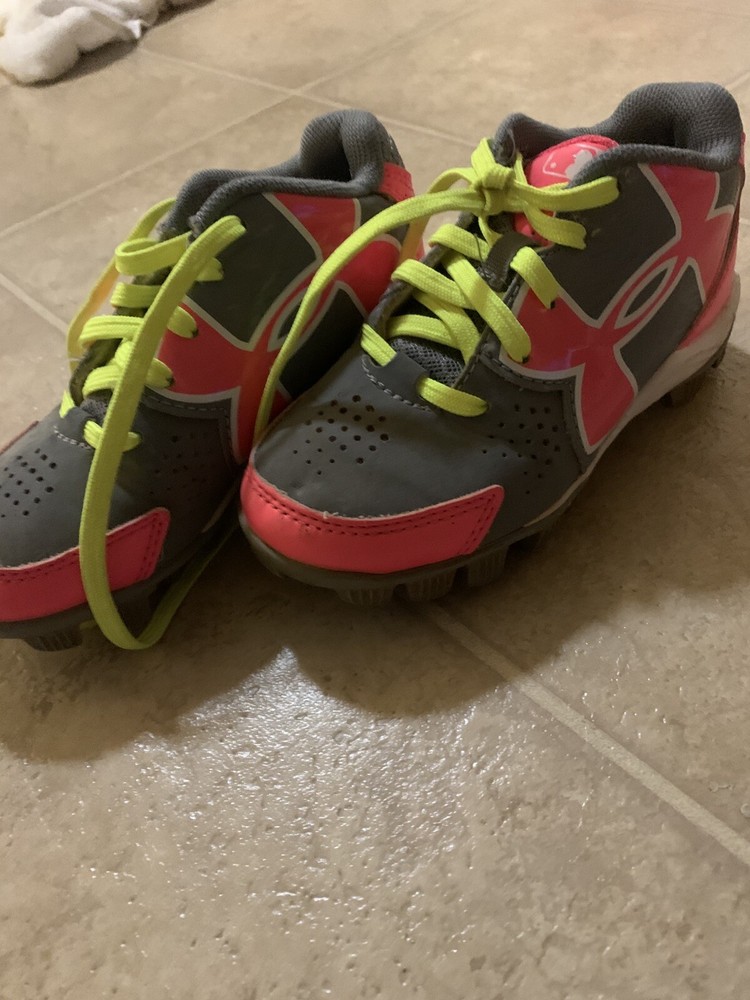 PAIR OF YOUTH SIZE 10k Kids NEON PINK, GREY & CHARTREUSE UNDER ARMOUR Baseball. Condition is Pre-owned. Shipped with USPS Ground Advantage.
