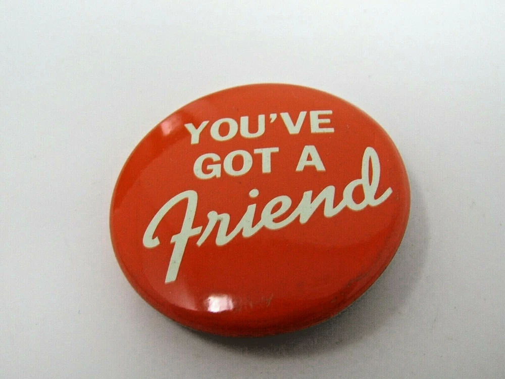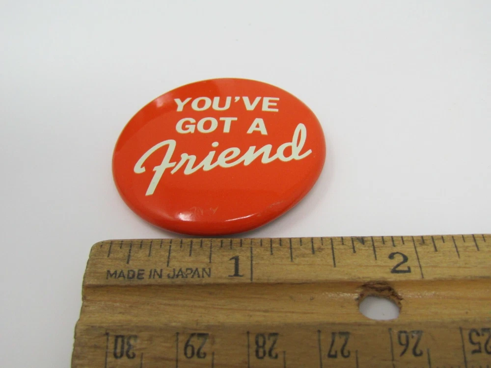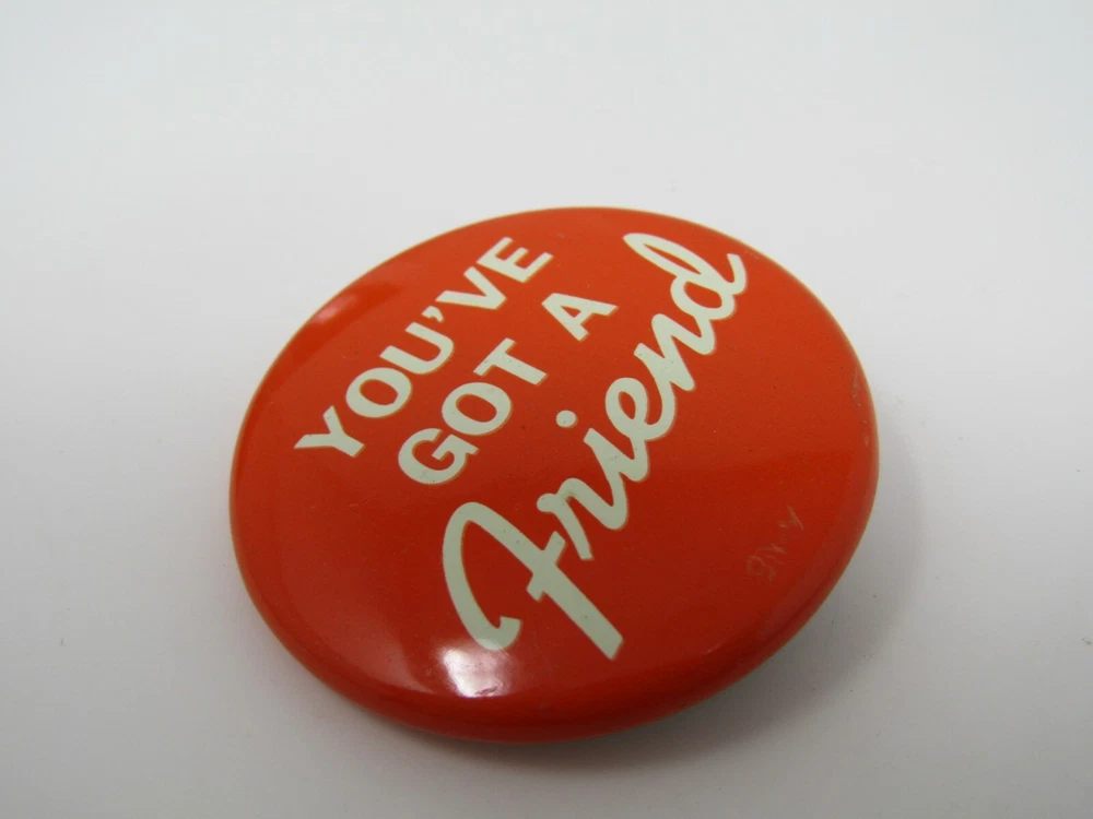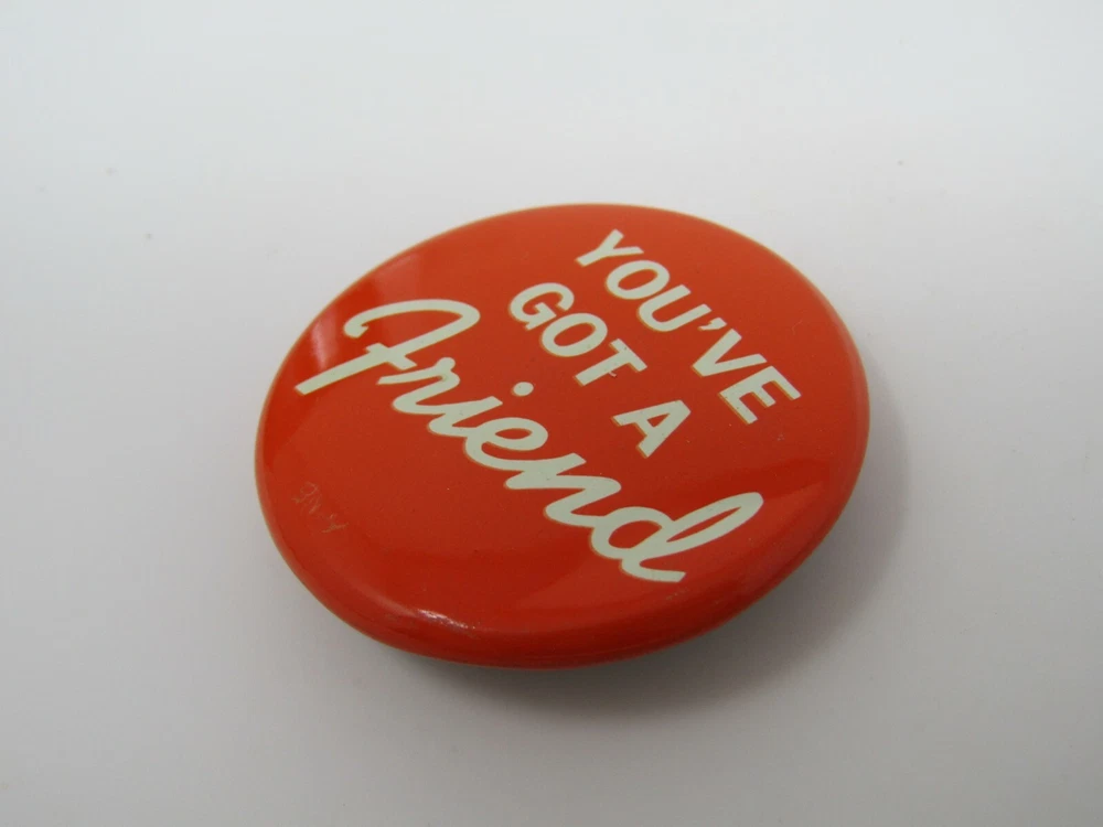 You've Got A Friend Pin Button ~ Almost all of our items are vintage and will have various degrees of wear, but we really don't carry anything that we wouldn't own ourselves. Please take a look at the pictures for the all vintage pins to get the best idea of wear. ~