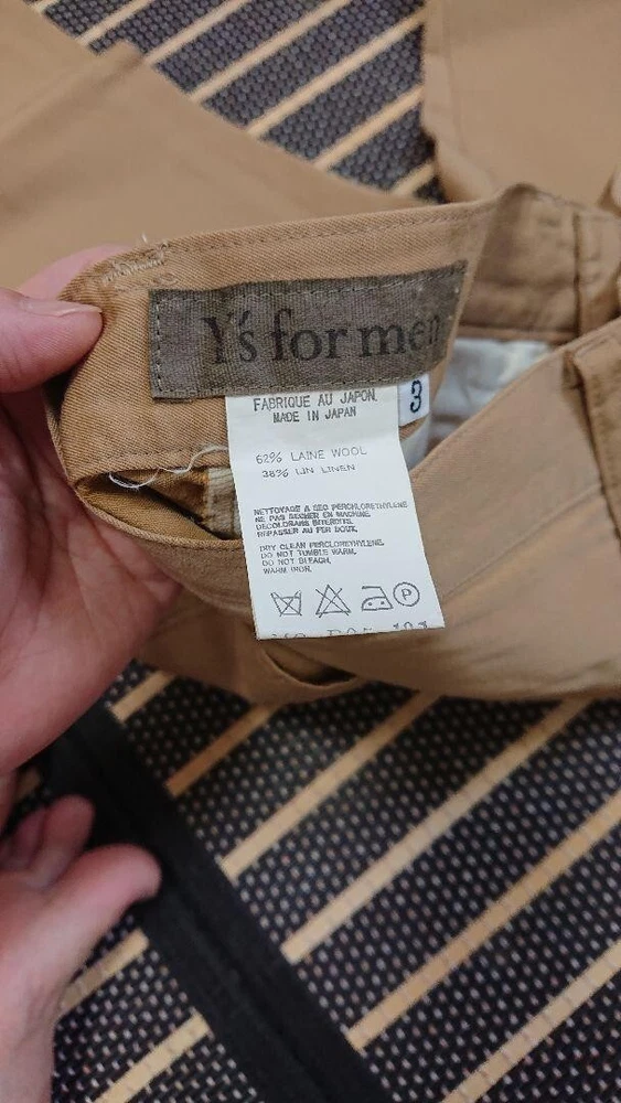 Garment Care: NA Product Line: NA Vintage: No Occasion: Business, Casual, Travel Department: Men Size Type: Regular Fit: Regular Brand: Yohji Yamamoto Size: 3 Rise: NA Features: Pockets Inseam: 31.4 in Pocket Type: NA Fabric Type: NA Personalize: No Country/Region of Manufacture: Japan Model: NA Theme: NA UPC: Does not apply MPN: NA Pattern: NA Closure: Button Season: Fall, Spring, Winter Handmade: No Type: Pants Waist Size: 30.7 in Accents: NA Material: Linen, Wool Leg Style: Straight gtin13: Does not apply Color: Beige Style: Chino