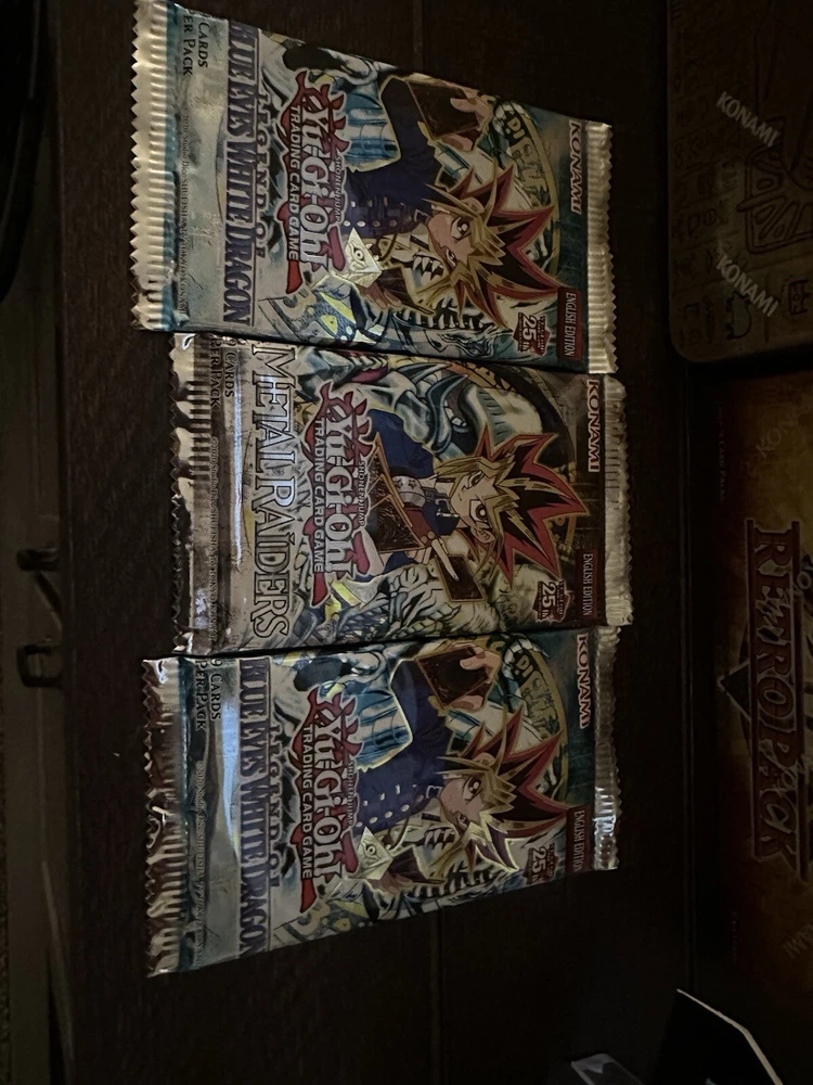 Yu-Gi-Oh Lot Of 9 Sealed Product Includes 2 - Retro pack box includes (4) Retro packs 2 - 2021 ancient Tins Each tin includes 3 Mega Packs 2 - Legend of blue eyes 25th anniversary booster packs 1 - metal raider booster pack 1 - Photon Hypernova 1st edition blister pack 1 - The Infinite Forbiddem 1st edition blister pack Shipped with care