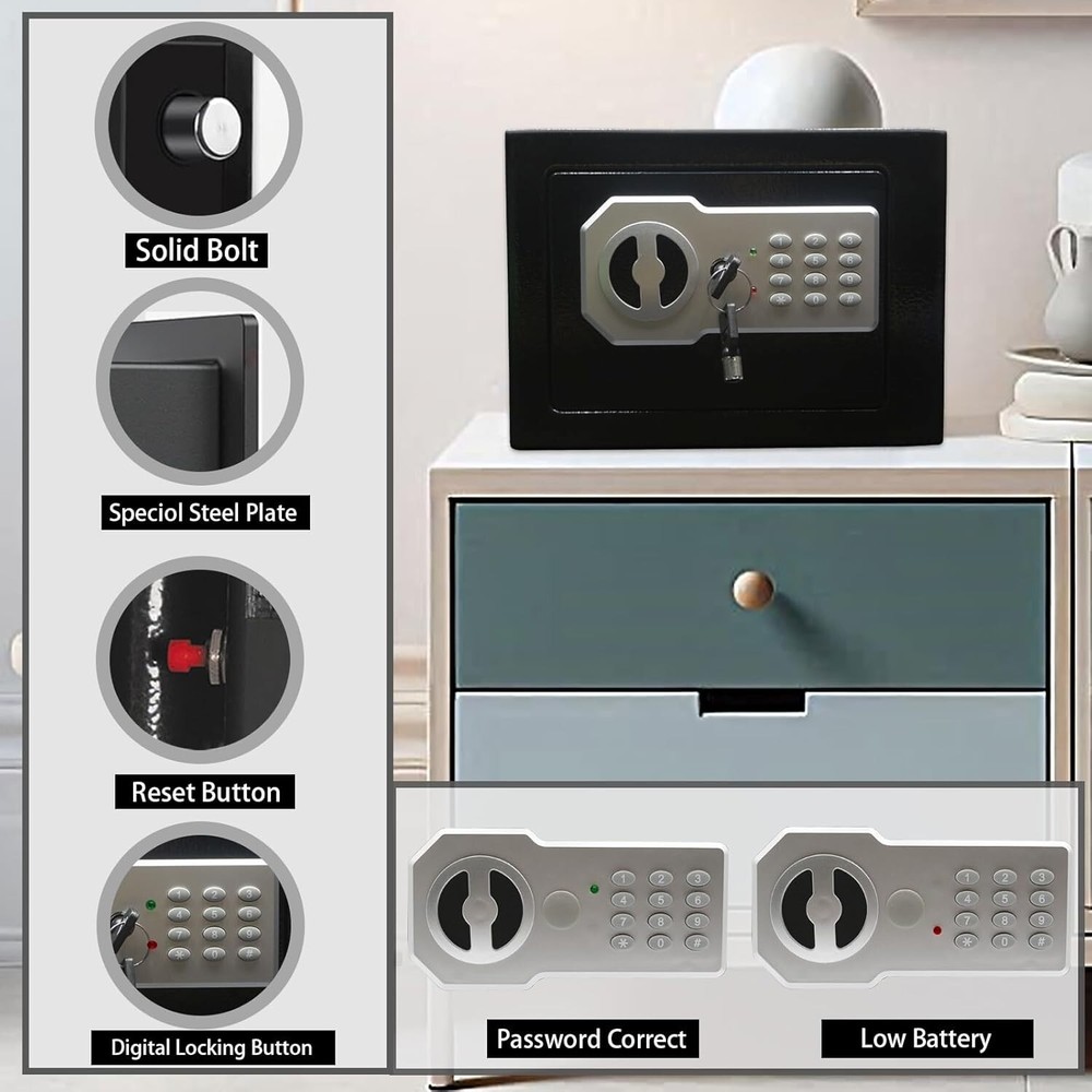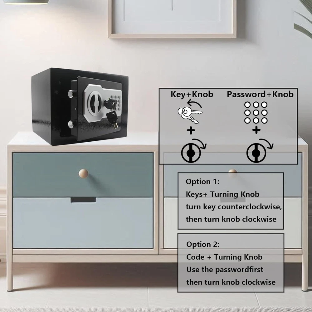 The Yuanshikj Key Electronic Keypad Security Safe Lock Box is a reliable and secure digital deposit solution for home security. With a sturdy steel construction and a convenient electronic keypad, this safe lock box allows users to easily access their valuables while providing peace of mind against potential theft. The Yuanshikj brand ensures quality and durability, making it a trusted choice for protecting important items in the home.