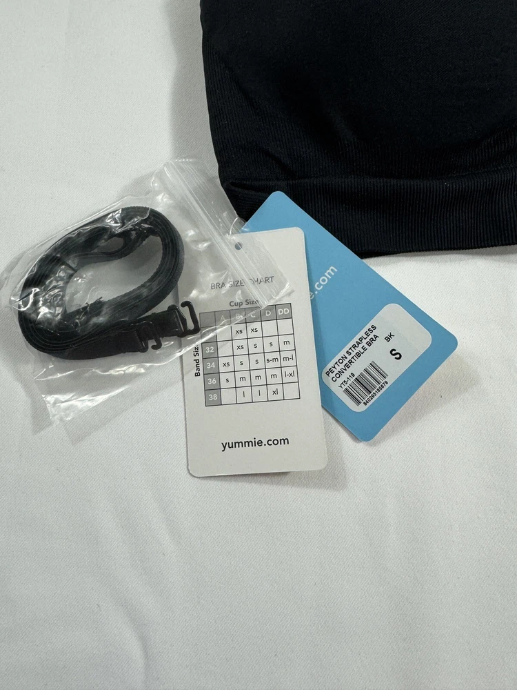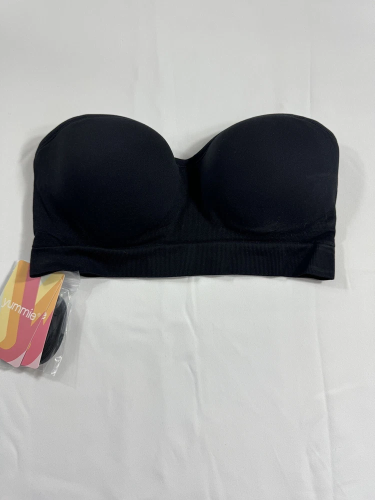 Get ready to feel comfortable and confident all day long with this Yummie Women's Peyton Seamless Wire Free Strapless Convertible Bra. This bra comes in the color black and is made with a nylon blend fabric, making it machine washable and easy to care for. The strapless design features a pullover closure and accented with a strap, making it easy to wear and stylish. The bra is available in size small with a wireless underwire type and one-size cup size. The bra is opaque and has a blended fabric type, making it perfect to wear with any outfit. With features like convertible and stretch, this bra is designed to provide maximum comfort and support. Perfect for any occasion, whether you're running errands or attending a special event.