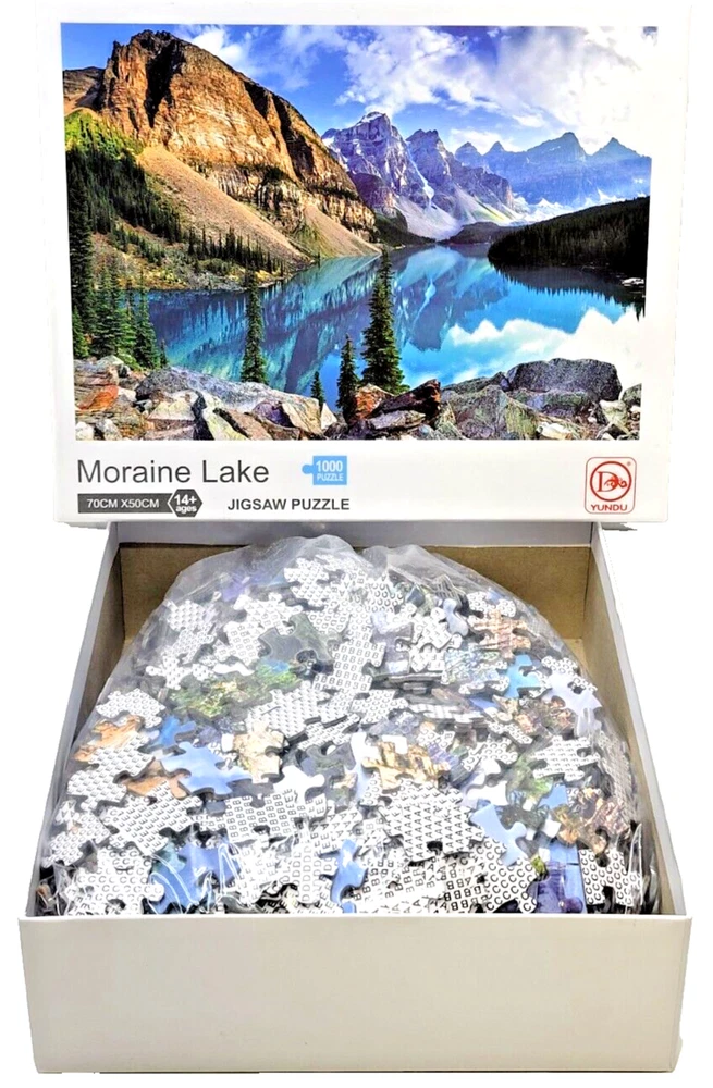 This Yundu 1000 piece jigsaw puzzle showcases the stunning beauty of Moraine Lake, in Banf National Park in Alberta, Canada, with its multi-color landscape theme. The puzzle pieces are made of sturdy cardboard material. It's a beautiful view, ensuring hours of fun and entertainment. It is perfect for puzzle enthusiasts and collectors alike, and can be a great addition to any toy or puzzle collection. Doing puzzles has some hidden benefits. Excellent qualities : Cultivate concentration, patience, and temper your will Movement development : Train hand-eye coordination and precise small movements Spatial intelligence : Improve visual discrimination of colors and shapes Critical thinking ability : Understand the relationship between parts and the whole, and draw inferences from one example to explore the future Relaxes your mind : Relieve work pressure and release yourself Brain development : Enhance memory and may help prevent or slow brain degeneration We did not work the puzzle or count the pieces, but we verify the number count at your request. Each item we ship is carefully packaged to prevent any damage and is shipped immediately with tracking.
