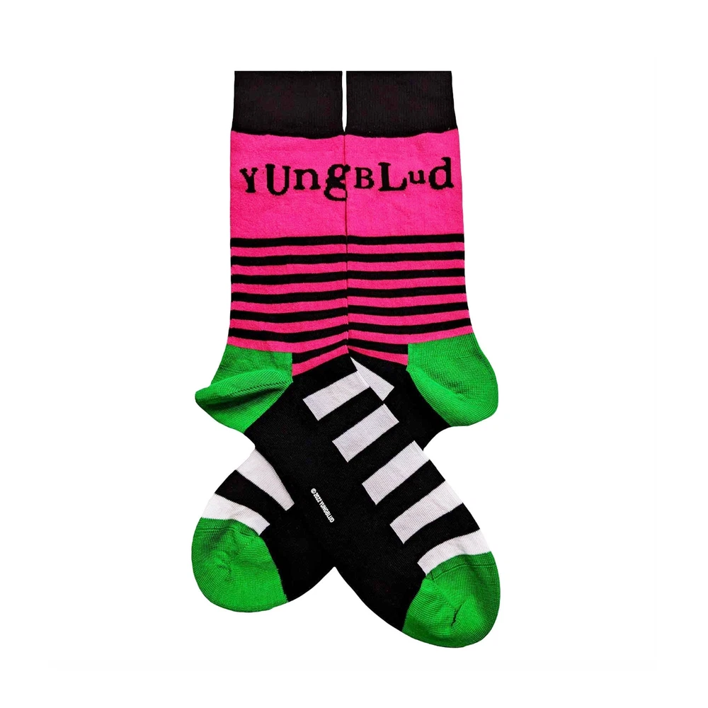 Yungblud Unisex T-Shirt: Lyric Photo & Socks - Gift set A best selling rock T-shirt with a pair of socks makes the perfect gift for any die-hard music fan. The premium quality, colourful, rich woven socks are made from 86% cotton, 12% Polyamide, 2% elastane and come in size 7-11 (UK), 41-46 (EU), 8-12 (US). The officially licensed t-shirt features a digital screen printed design, short sleeves, crew neck, a soft-style finish and is Cotton. These smart gift sets are limited in number, so be sure to grab yours while you can. Rock Off officially licensed products.