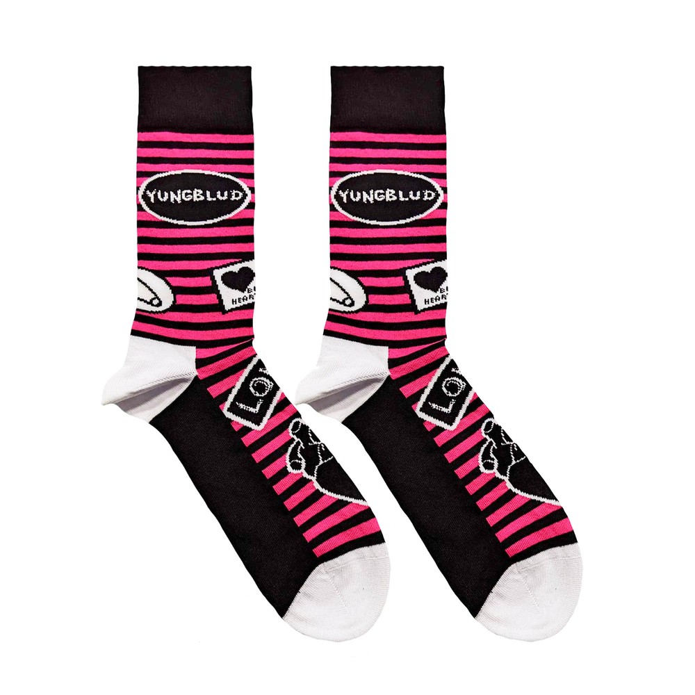 Yungblud Unisex T-Shirt: Weird Track list (Eco-Friendly) & Socks - Gift set A best selling rock T-shirt with a pair of socks makes the perfect gift for any die-hard music fan. The premium quality, colourful, rich woven socks are made from 86% cotton, 12% Polyamide, 2% elastane and come in size 7-11 (UK), 41-46 (EU), 8-12 (US). The officially licensed t-shirt features a digital screen printed design, short sleeves, crew neck, a soft-style finish and is Cotton. These smart gift sets are limited in number, so be sure to grab yours while you can. Rock Off officially licensed products.