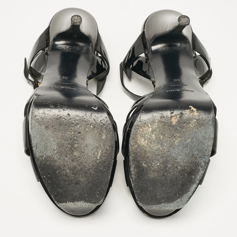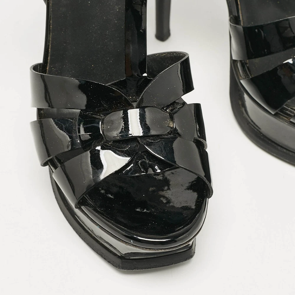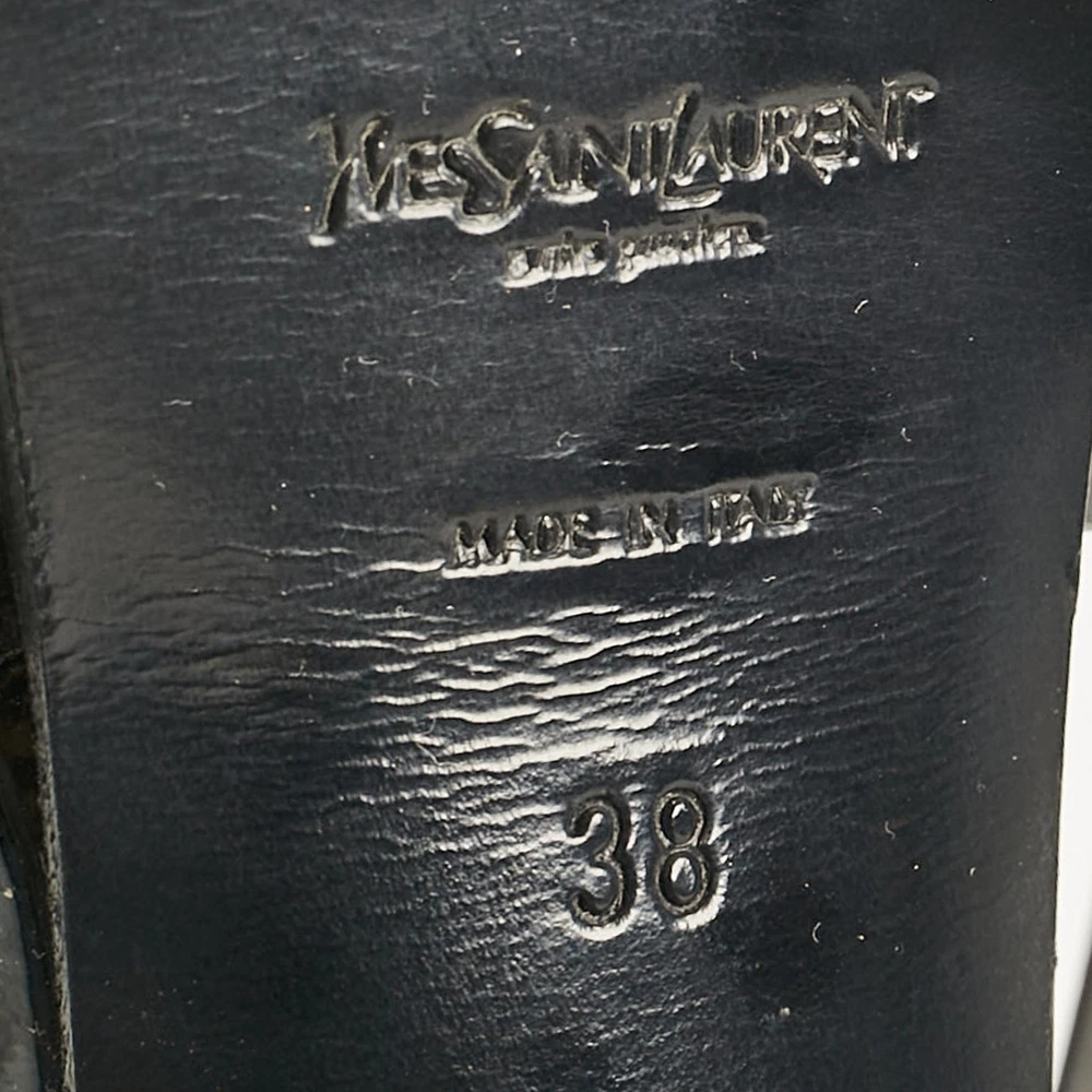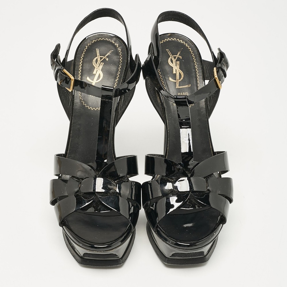 You can count on these Saint Laurent sandals to complete a summer look. They are crafted beautifully and designed to offer the right fit and a comfortable lift.Certified by The Luxury Closet - This item has gone through a detailed authentication process overseen by our experts. We offer a lifetime guarantee of authenticity on all our items. Import duties, taxes and charges are not included in the item price. These charges are the buyers responsibility. Please check with your country’s customs office to determine what these additional cost will be prior to buying. Our eBay Store About Us Contact Us Add to Favorite Sellers Yves Saint Laurent Black Patent Leather Platform Sandals Size 38 $259.6 You can count on these Saint Laurent sandals to complete a summer look. They are crafted beautifully and designed to offer the right fit and a comfortable lift. Product Details Brand Color Black Dimensions Material Patent Leather Size 38 Outsole Width 7.5 cm Outsole Length 21.5 cm Heel Height 13.5 cm Includes Original Dustbag Certified by The Luxury Closet This item has gone through a detailed authentication process overseen by our experts. We offer a lifetime guarantee of authenticity on all our items. How We Check The in-house team of experts at The Luxury Closet is highly trained to verify the authenticity and the condition of the luxury products. They ensure that only 100% authentic items are put on sale.The evaluation process is unique with its own mix of assessment criteria and differs according to the category. Each item is evaluated based on the following combination of hallmarks, hardware, stitching, symmetry, material, craftsmanship, stamping, codes, hologram stickers, and packaging. Our authenticators also check if the items have been modified or amended (e.g., aftermarket diamonds, replaced batteries, repaired bags, etc.) International Buyers Import duties, taxes and charges are not included in the item price. These charges are the buyers responsibility. Please check with your country’s customs office to determine what these additional cost will be prior to buying.