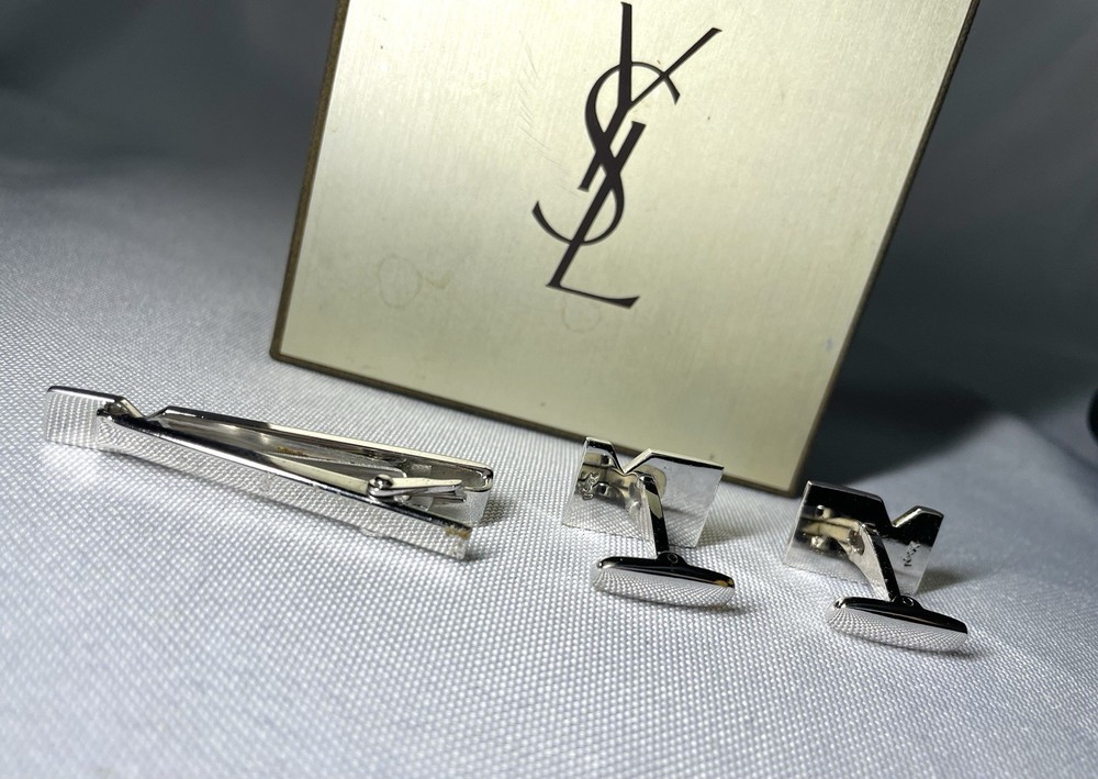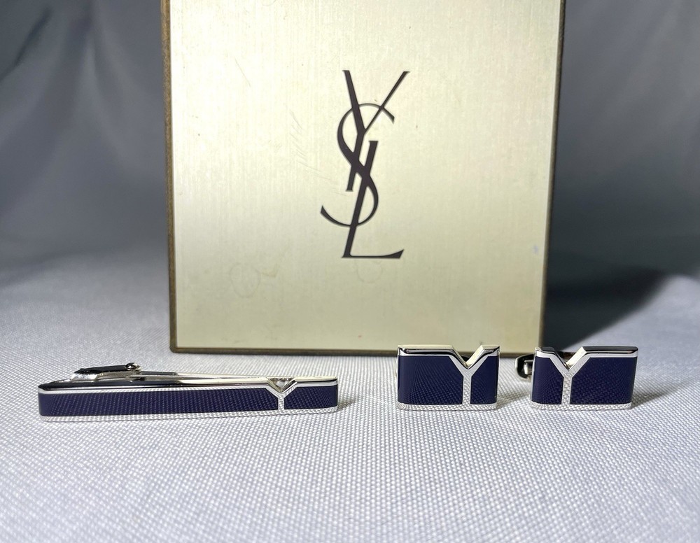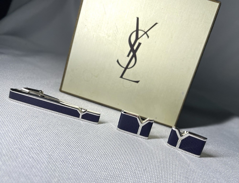 Information We cannot offer such a large discount as half price, but please feel free to send us your best offer. We will consider it as much as possible. It depends on the time of payment. Basically, we will ship the same day or the next day. (Shipping may be delayed due to business trips or other reasons. In that case, we will contact you via message). I purchased this item several years ago from an online store in Japan. Yves Saint Laurent Y Logo mirrored silver x dark navy Tie Pin cufflinks set Rare discontinued vintage model. The Y line of Yves Saint Laurent's initial design and the mirrored silver and dark navy are eye-catching. The elegant coloring gives off the luxurious aura of a high-end brand. This item only From casual to dressy occasions This is a magical one-point item that works in a wide range of fields and elevates your coordination. Don't miss this opportunity! Shipping Depending on the time of payment,Basically, we ship the same day or the next day. (Sometimes shipping may be delayed due to business trips. In that case, we will contact you via message.) Item Descriptiont Color: Mirrored silver and dark navy Material: unknown Size: Necktie pin About 5.2 x 0.6 cm (2.047 x 0.236 inches) Weight 8g Cuff links About 1.9 x 1.2 cm (0.748 x 0.472 inches) Weight 6g x 2 Condition:Beautiful Vintage There are some age-related dulling and deterioration characteristic of vintage models on the back portion, The main surface is clean and hidden when worn, so it is not visible. The clip is not loose. The surface of the watch is in good condition and shines well. Accessories: Genuine case (The genuine case is stained, deteriorated, and damaged over time.) Other accessories for Yves Saint Laurent model and We also have a large selection of luxury models such as Hermes, Tiffany & Co, Cartier, Bvlgari, Saint Laurent, Celine, Burberry, Valentino, Philippe Chariol, Montblanc, Dunhill, Versace, Givenchy, Montblanc, etc. I would appreciate it if you could watch it “To ensure that buyers can conduct transactions with peace of mind” We are responsible for all products we sell. Customer feedback excellent seller. Communication went well. Even though I came to America from Japan, I was told that the product would arrive quickly and in time for my specific birthday. High quality products are also available! Highly recommended! ++++++ Great seller! They were very responsive and the product description was accurate. I strongly recommend it! This is a very popular seller and is easy to do business with. The cufflinks were mint quality. I would be happy if you could respond. Oh, and his TKU to the A+++ seller for careful packaging and safe and surprisingly fast delivery of a beautiful PC. Excited by the rich quality look and feel of the metalwork, it looks like new and is perfect in every way. His TKU to the seller was also strong and clear communication from start to finish, which led to a wonderful and positive transaction. We have received many opinions regarding the text above, so please feel free to purchase with confidence. Of course, please rest assured that all of the products we sell are genuine products. We look forward to doing business with you!